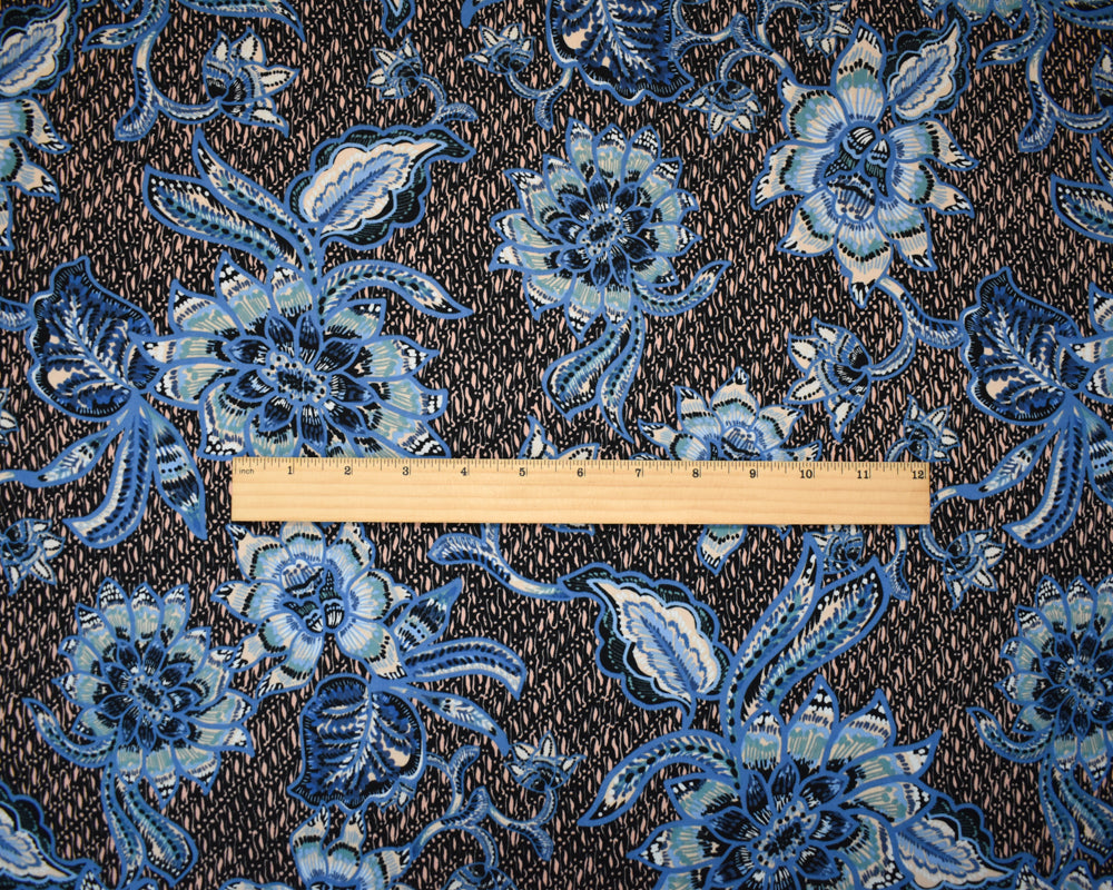 Blue-Peach-Multi Cotton-Rayon Floral Printed Lawn Woven Fabric