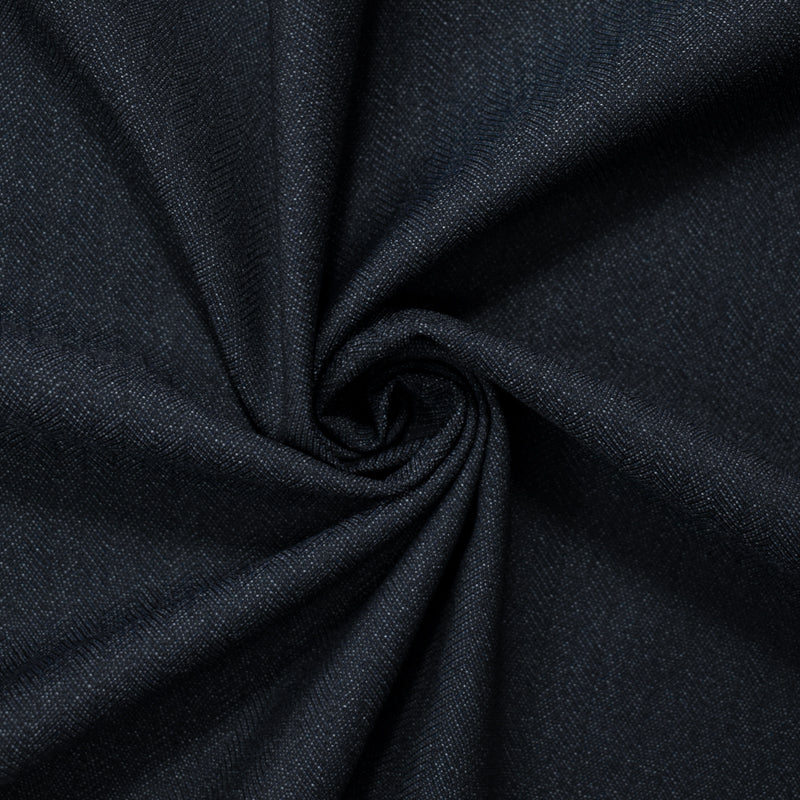 Deep Navy-Gray Wool Poly Herringbone Twill Woven Shirting Fabric