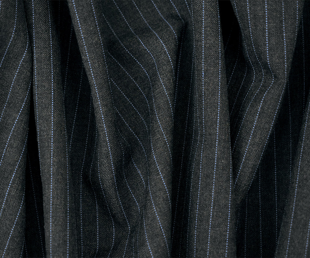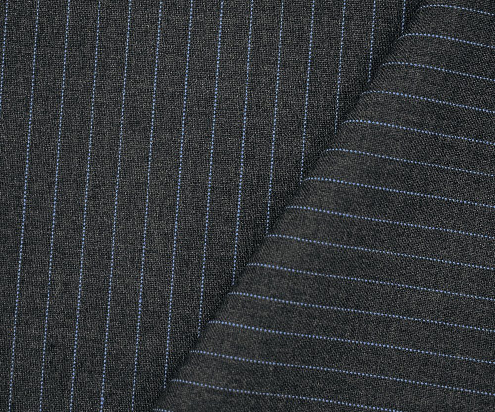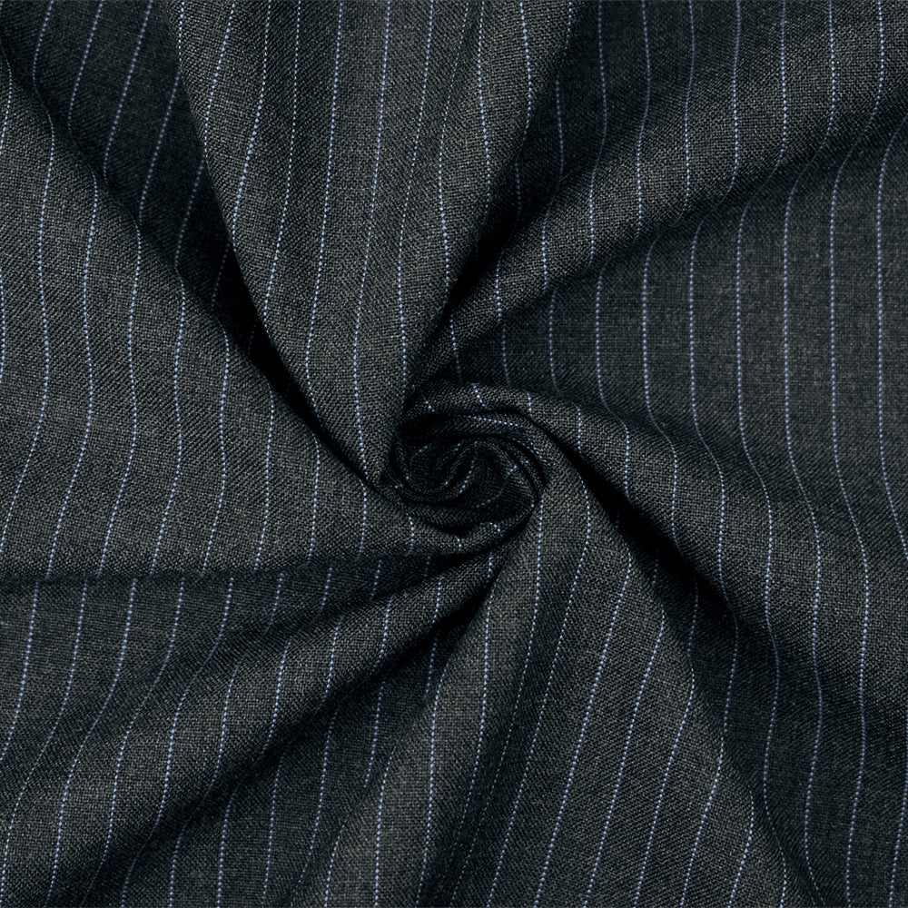 Gray-Black-Blue Poly-Wool Pinstripe Woven Shirting Fabric