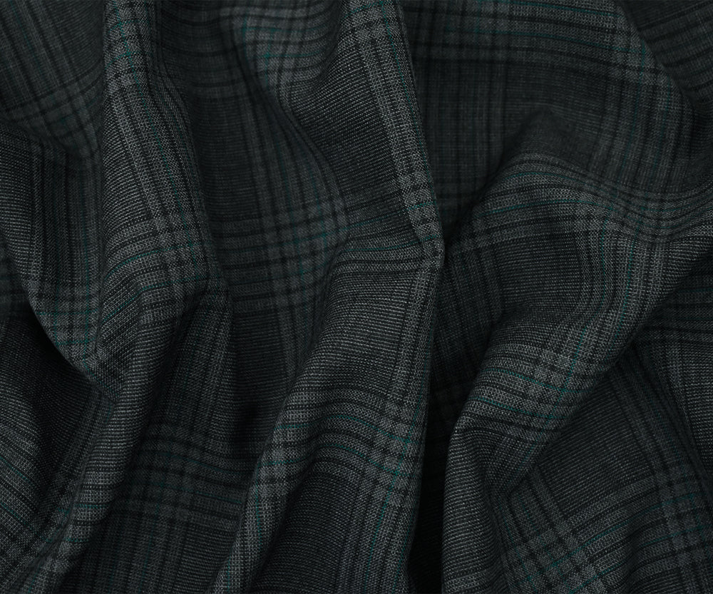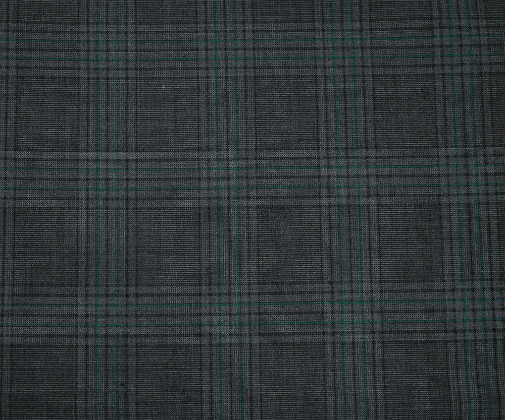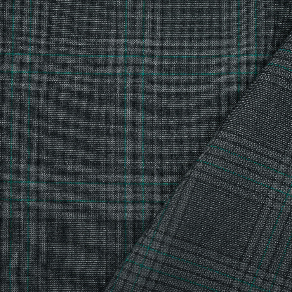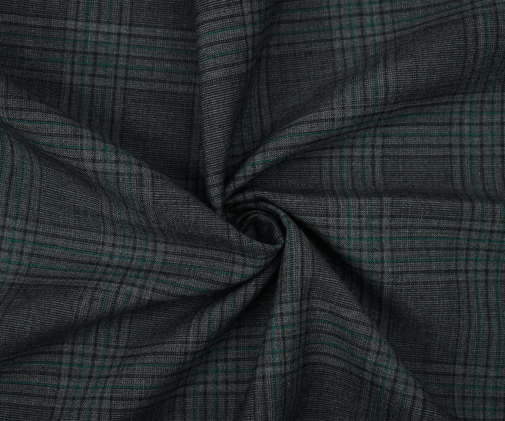 Gray-Black-Green Polyester Wool Blend Plaid Woven Shirting Fabric