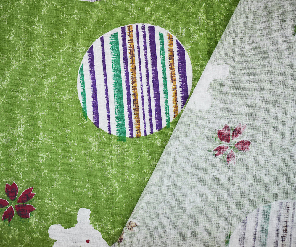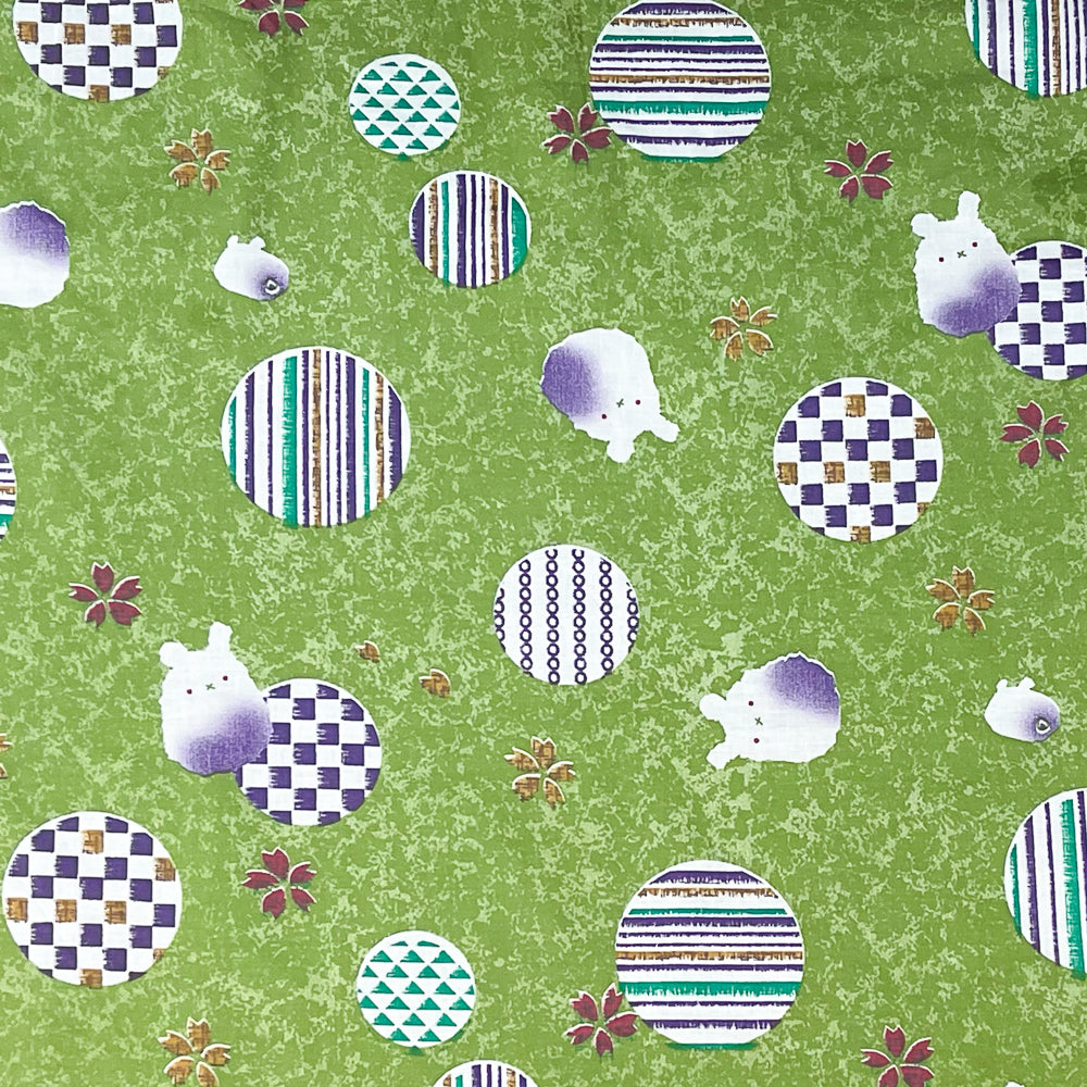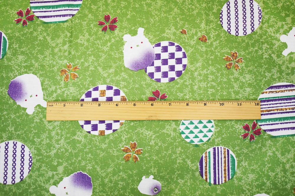 Green-Purple-Multi Abstract Bunny Art Printed Cotton Shirting Woven Fabric