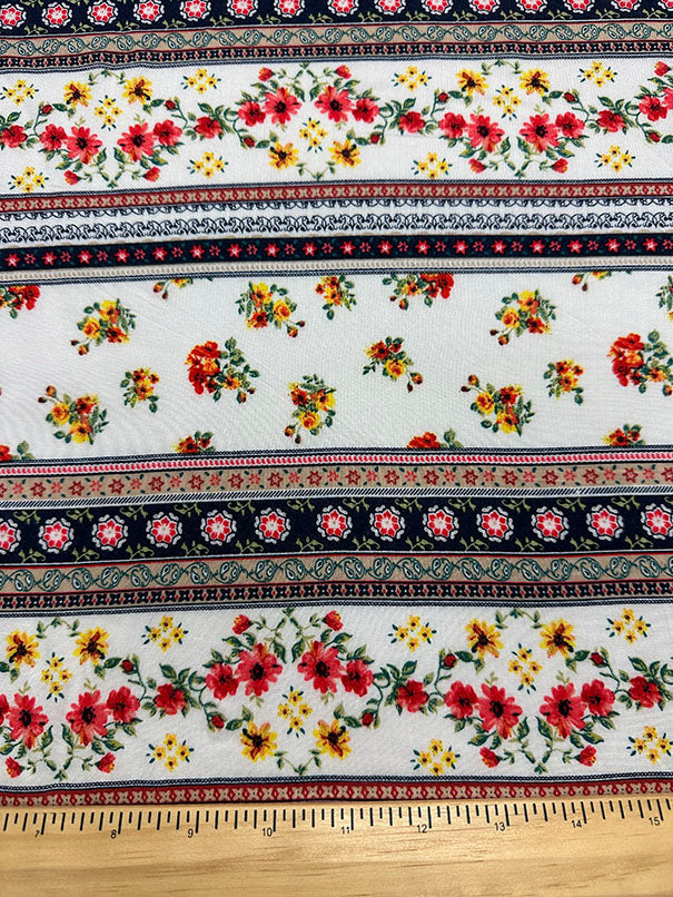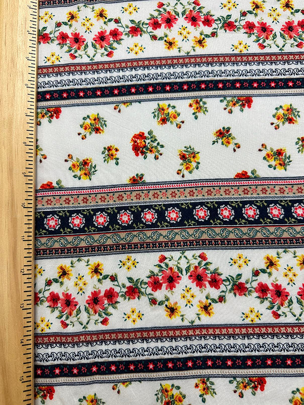 Ivory Floral Stripe Print Rayon Challis Fabric
