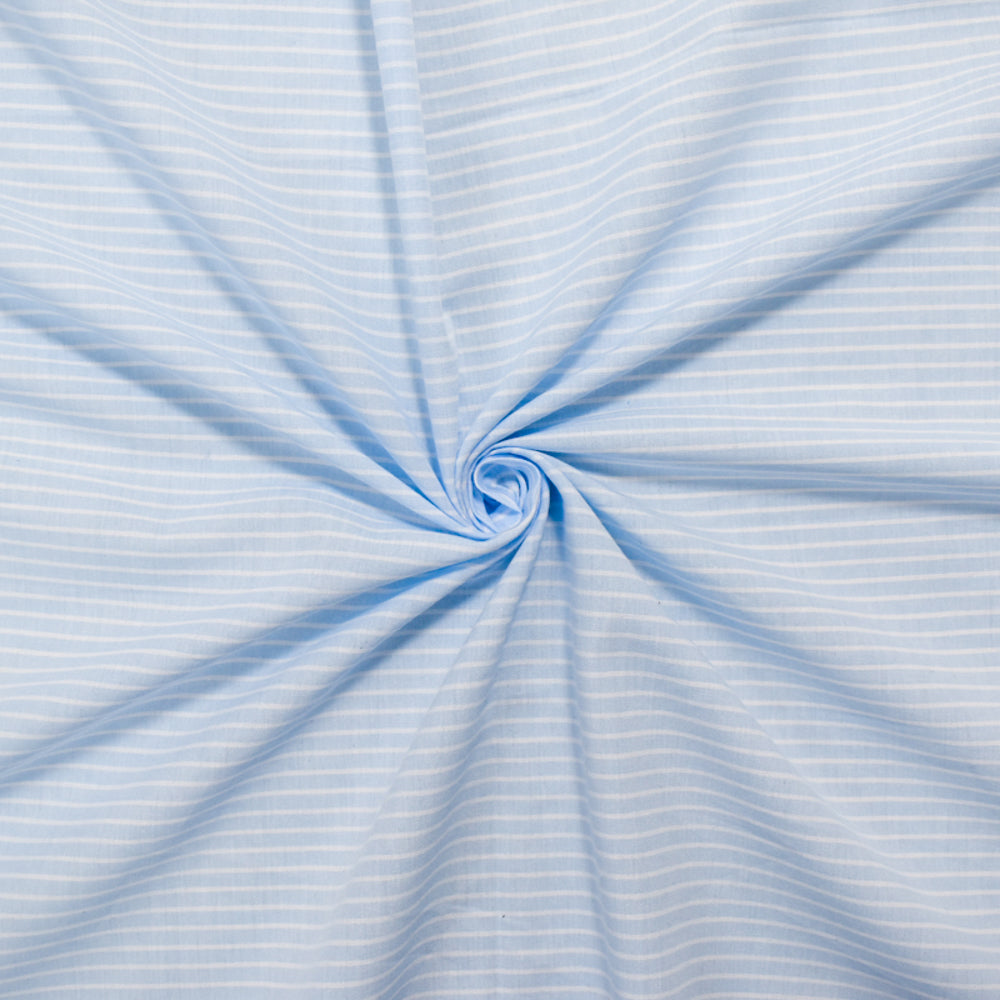 Light Blue-White Cotton Pinstripe Shirting Woven Fabric