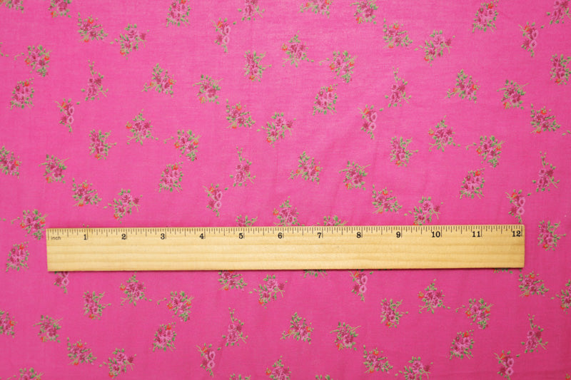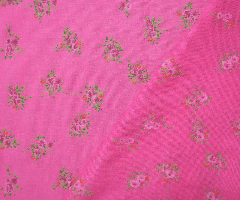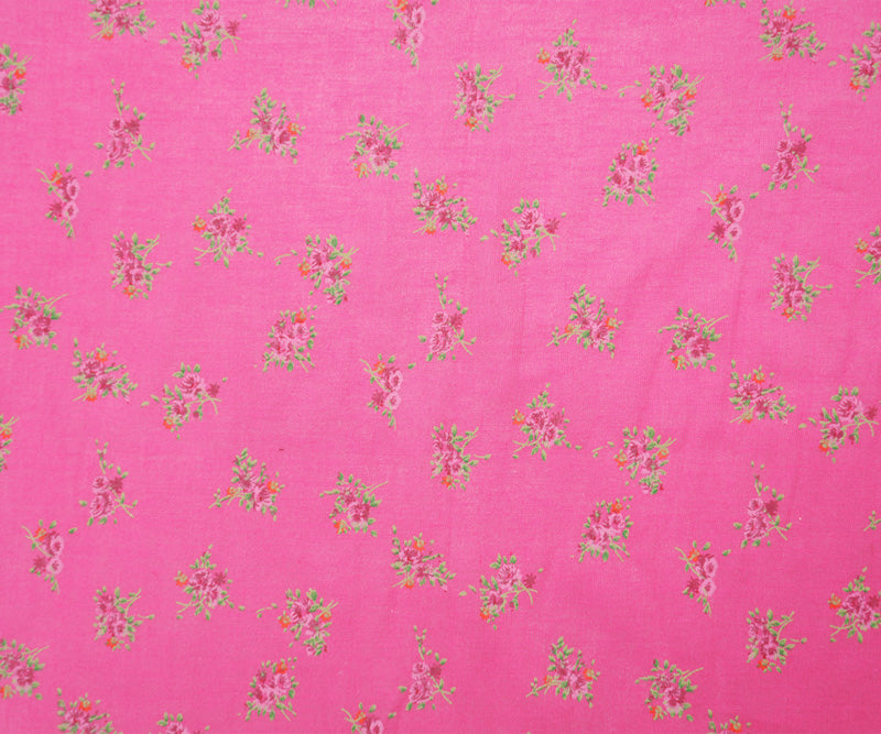 Pink-Green-Red Cotton Floral Printed Voile Woven Fabric