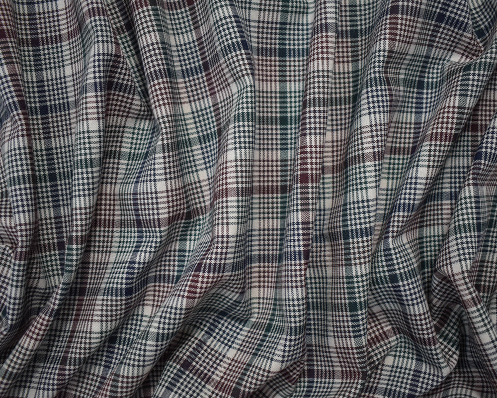 Red-Green-Multi Poly-Wool Japanese Plaid Woven Shirting Fabric
