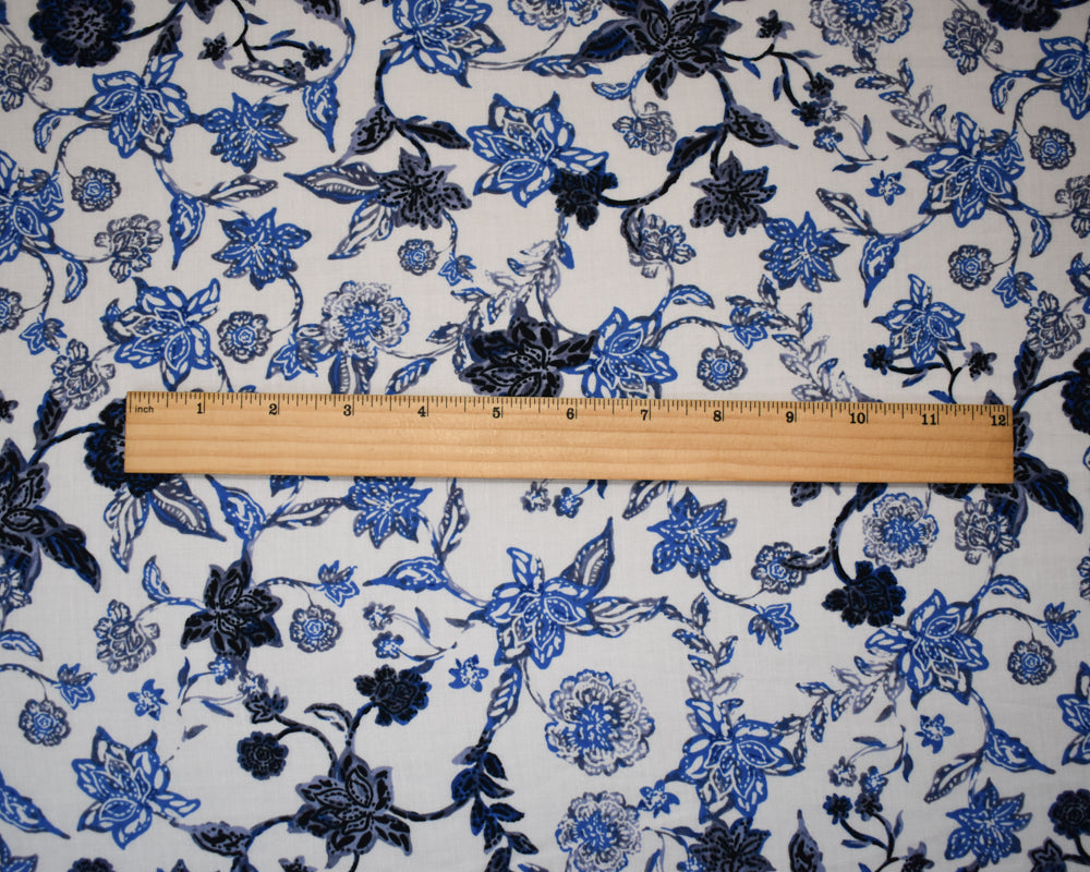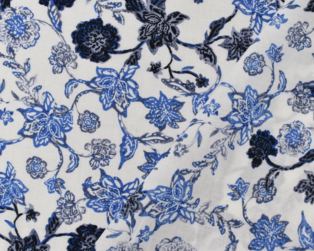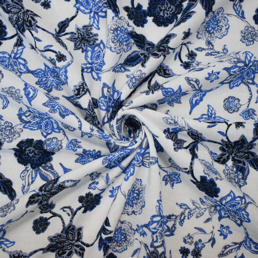 White-Blue-Multi Cotton-Rayon Floral Printed Lawn Woven Fabric
