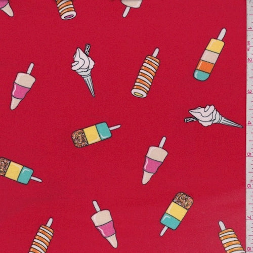 Red Ice Cream Treat Double Brushed Jersey Knit Fabric