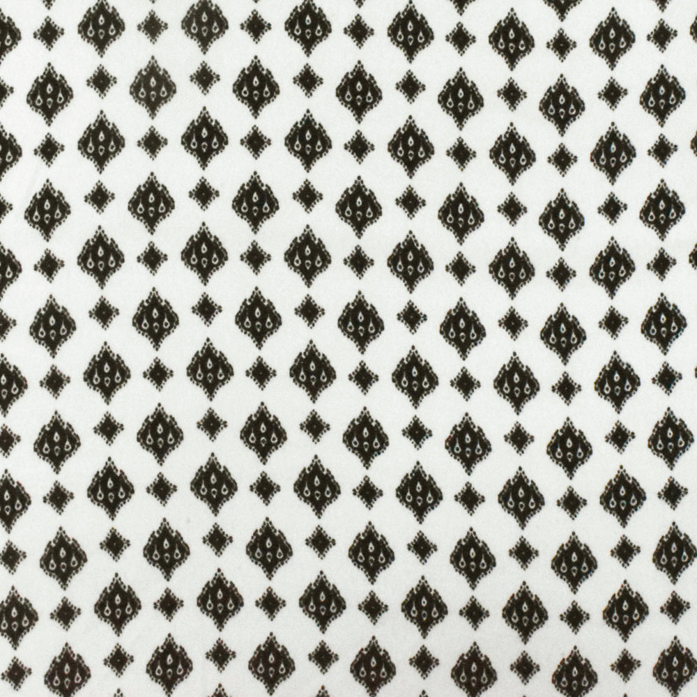 -Ogee and diamond-like motifs printed on a 100% rayon crepe faille woven fabric