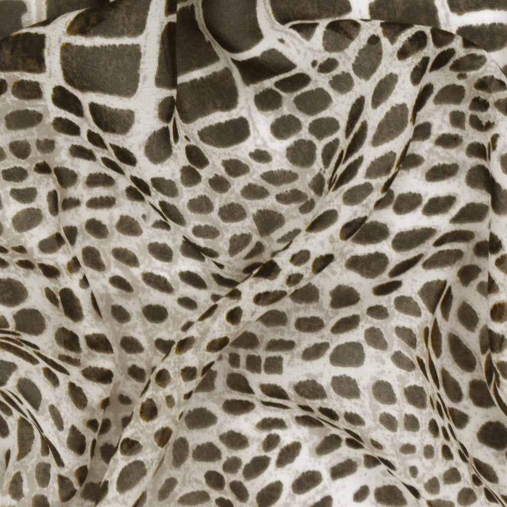 Black-Brown-Ivory Reptile Printed Silk Chiffon Fabric