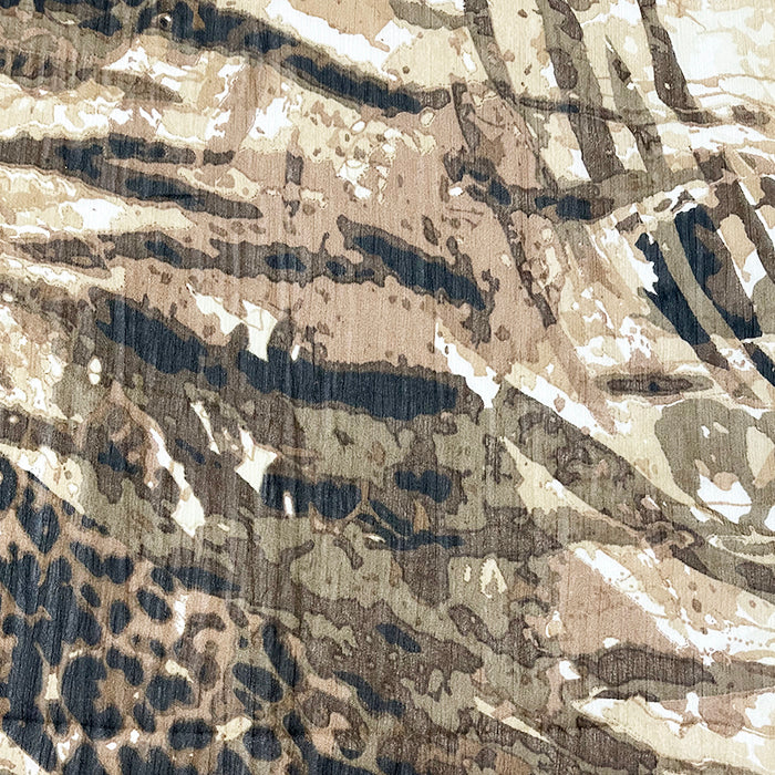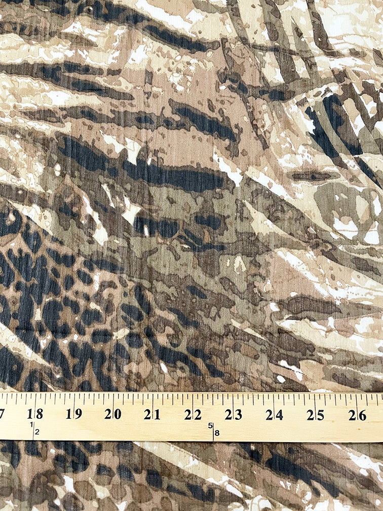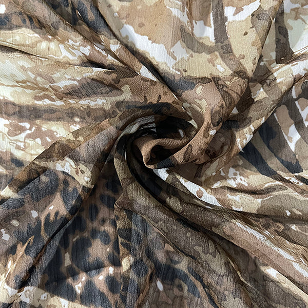 -White, Brown, Olive Green, Beige, & Black Animal Print Crinkled Chiffon Fabric