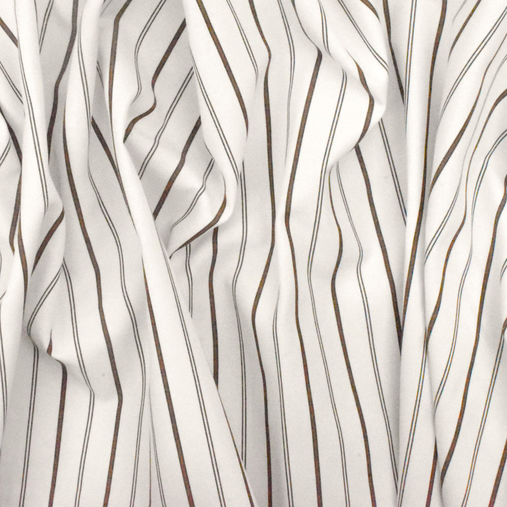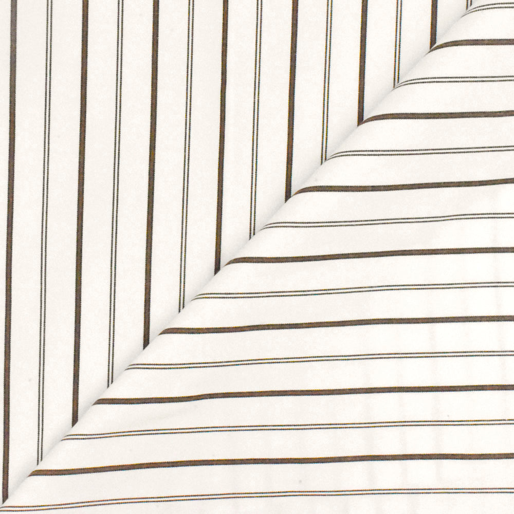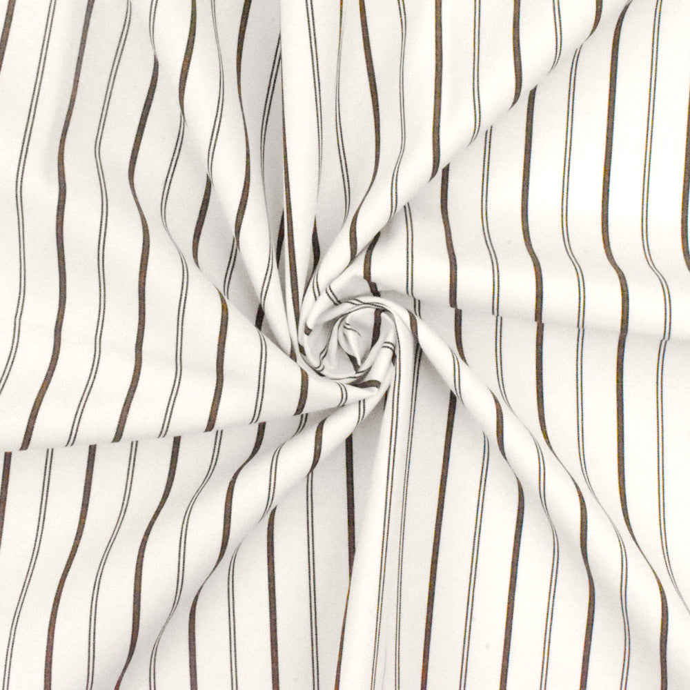 Pure White-Black-Brown Stripe Polyester Shirting Woven Fabric