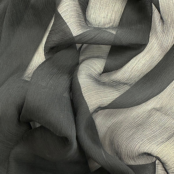 Navy Blue Woven Crinkled Silk Chiffon Fabric