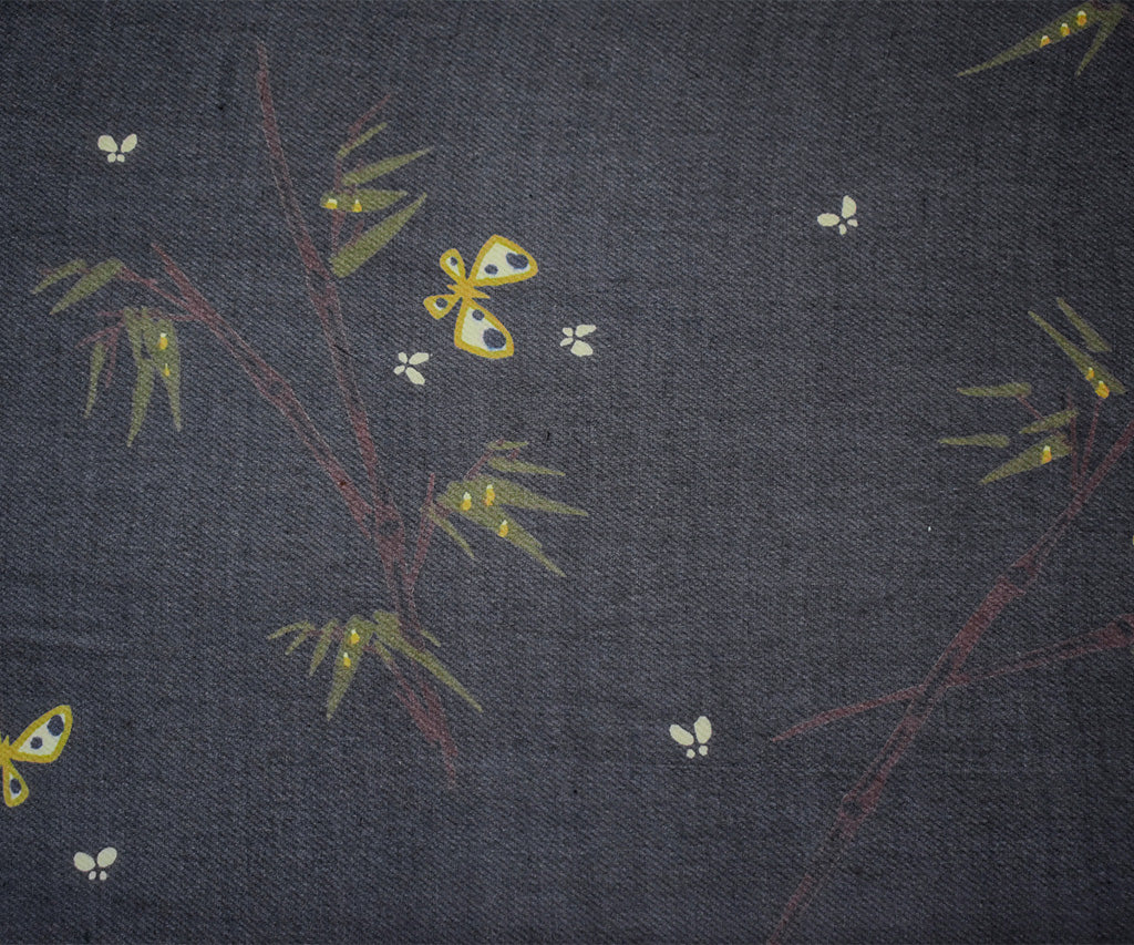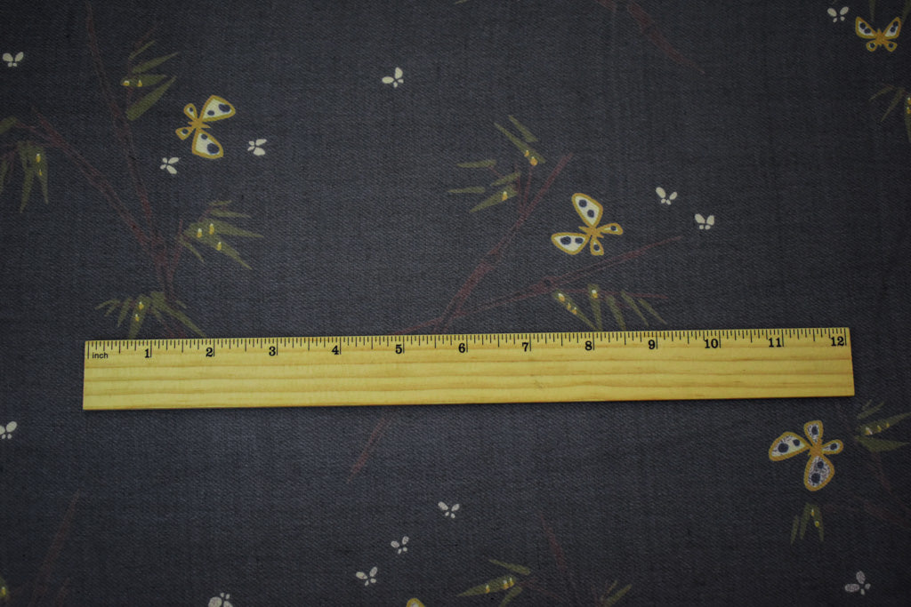 Black-Brown-Multi Silk Butterfly Branch Printed Chiffon Woven Fabric