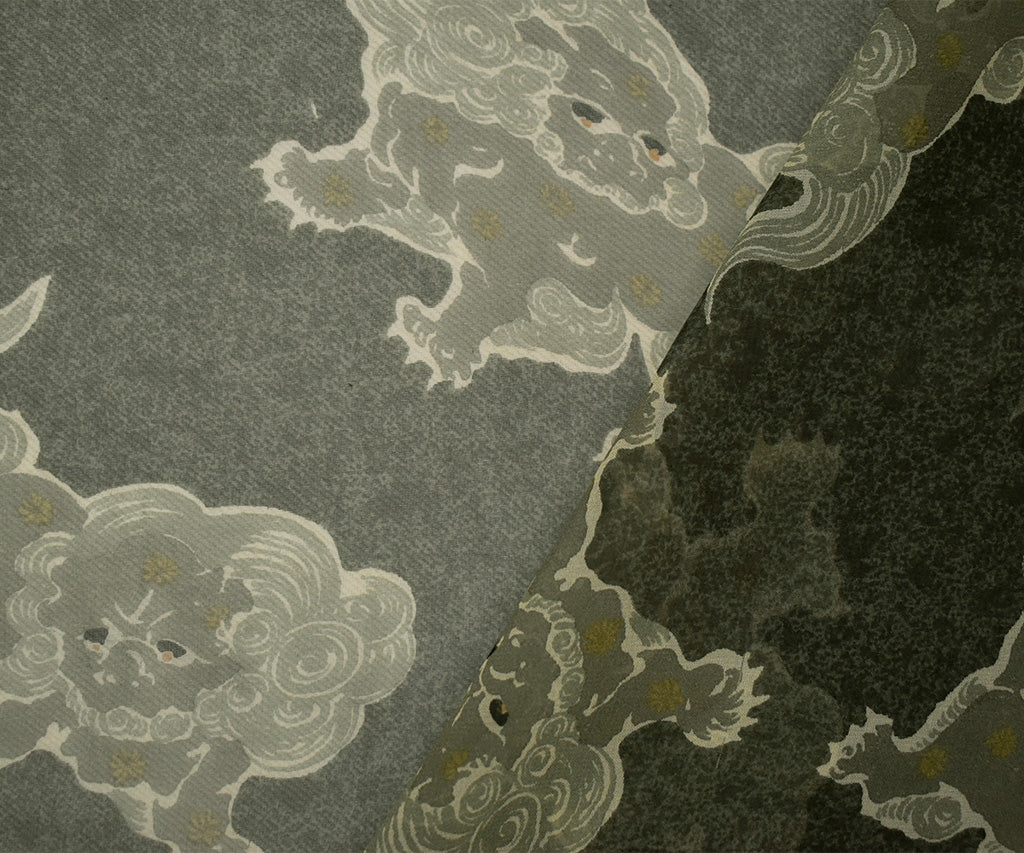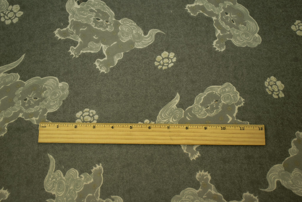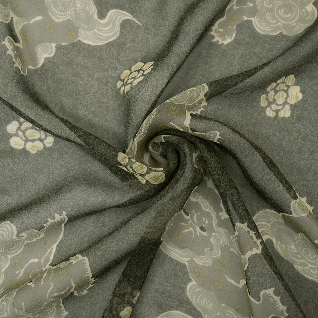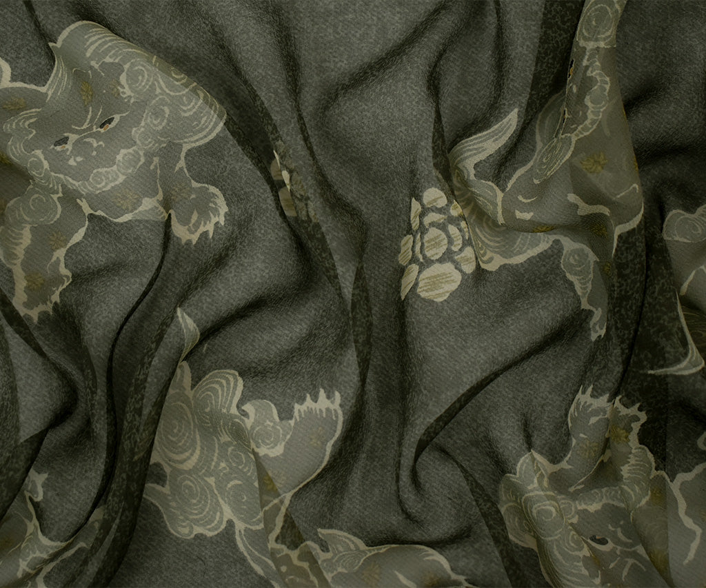 Black-Gray-Multi Silk Folklore Creature Printed Chiffon Woven Fabric