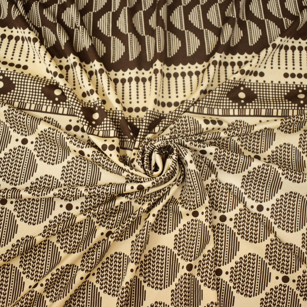 Brown-Beige Dot Striped Pattern Printed Stretch Silk Jersey Knit Fabric