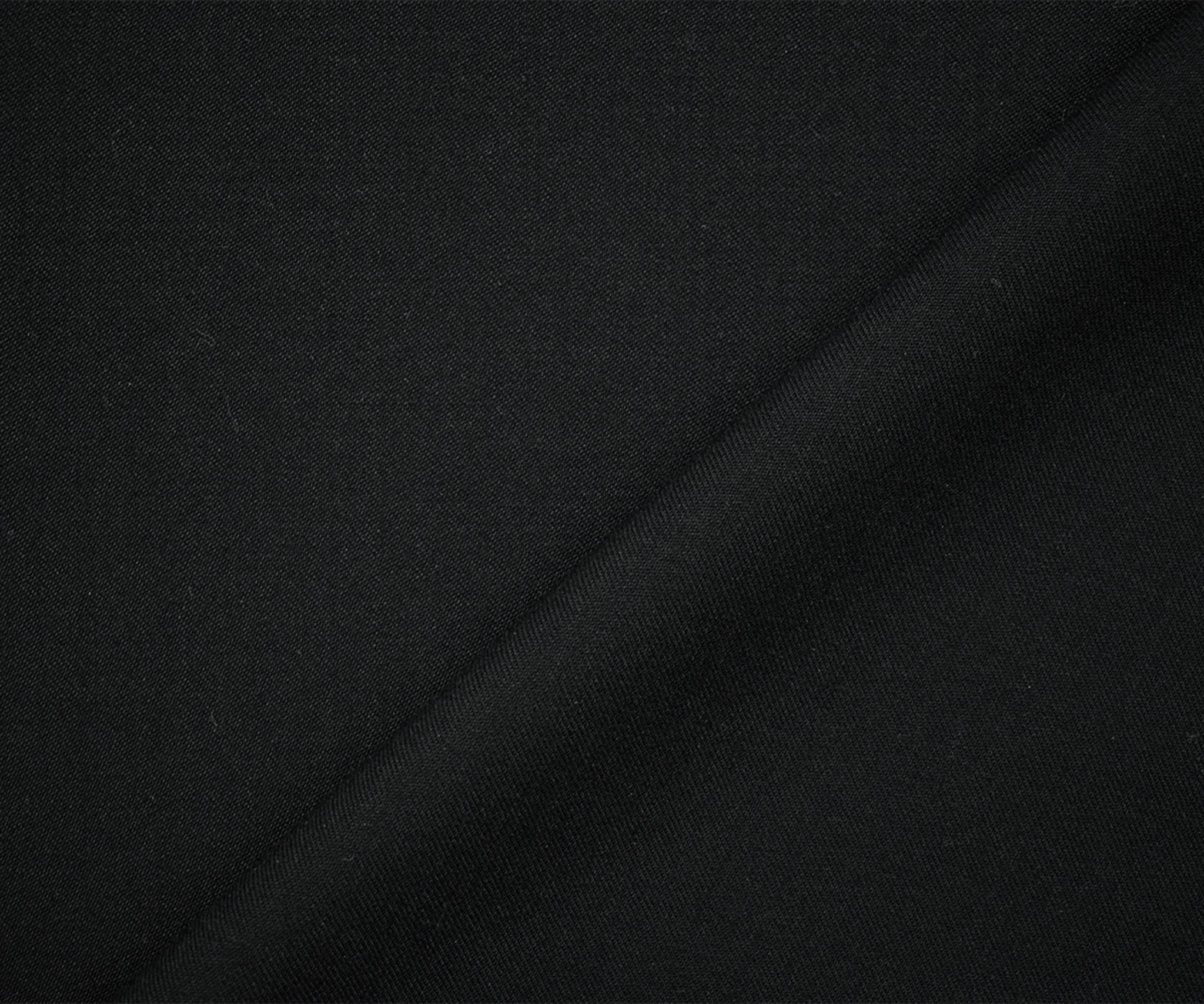 Black Wool-Polyester Black Solid Twill Woven Suiting Fabric