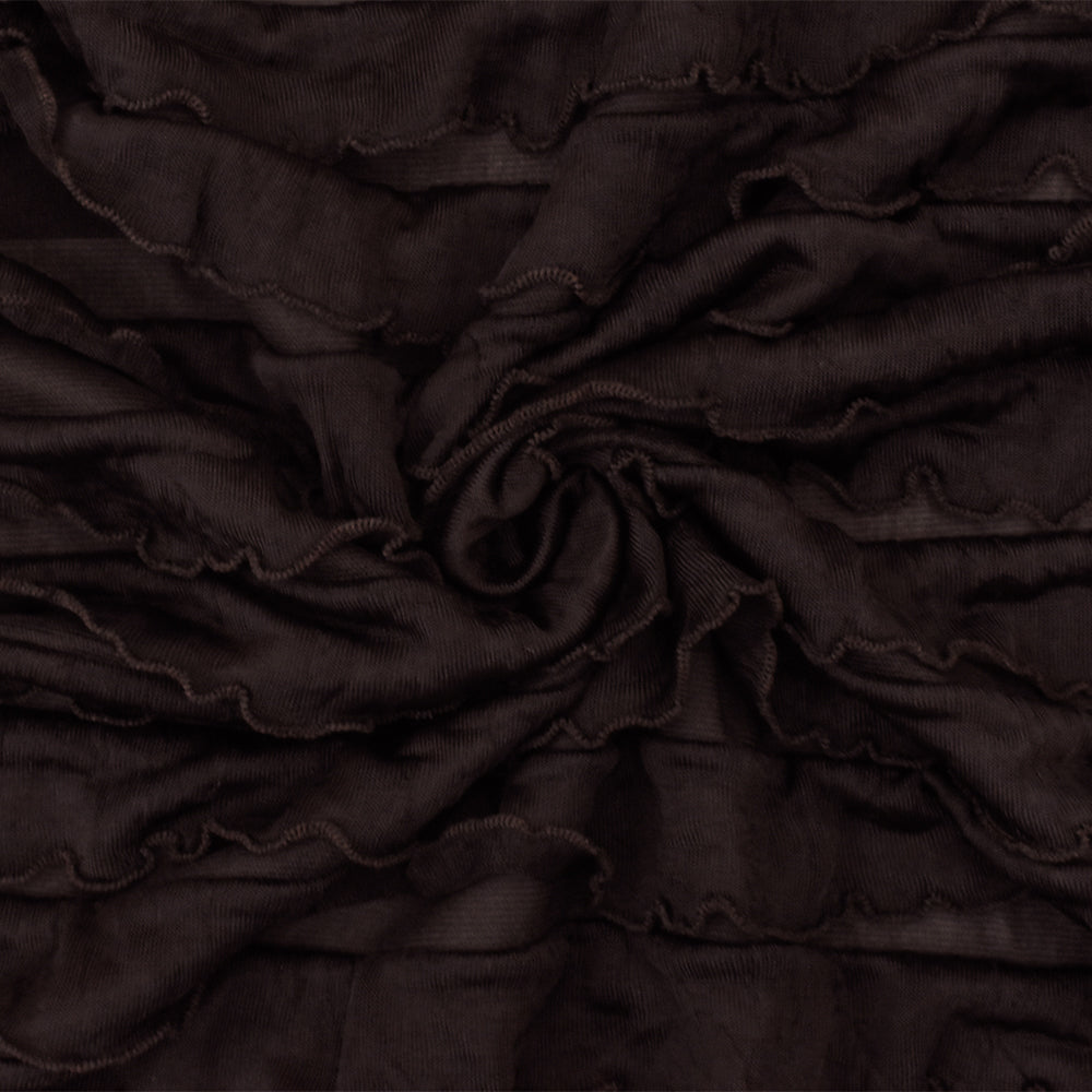 Dark Chocolate Brown Solid Stretch Poly Ruffle Knit Fabric