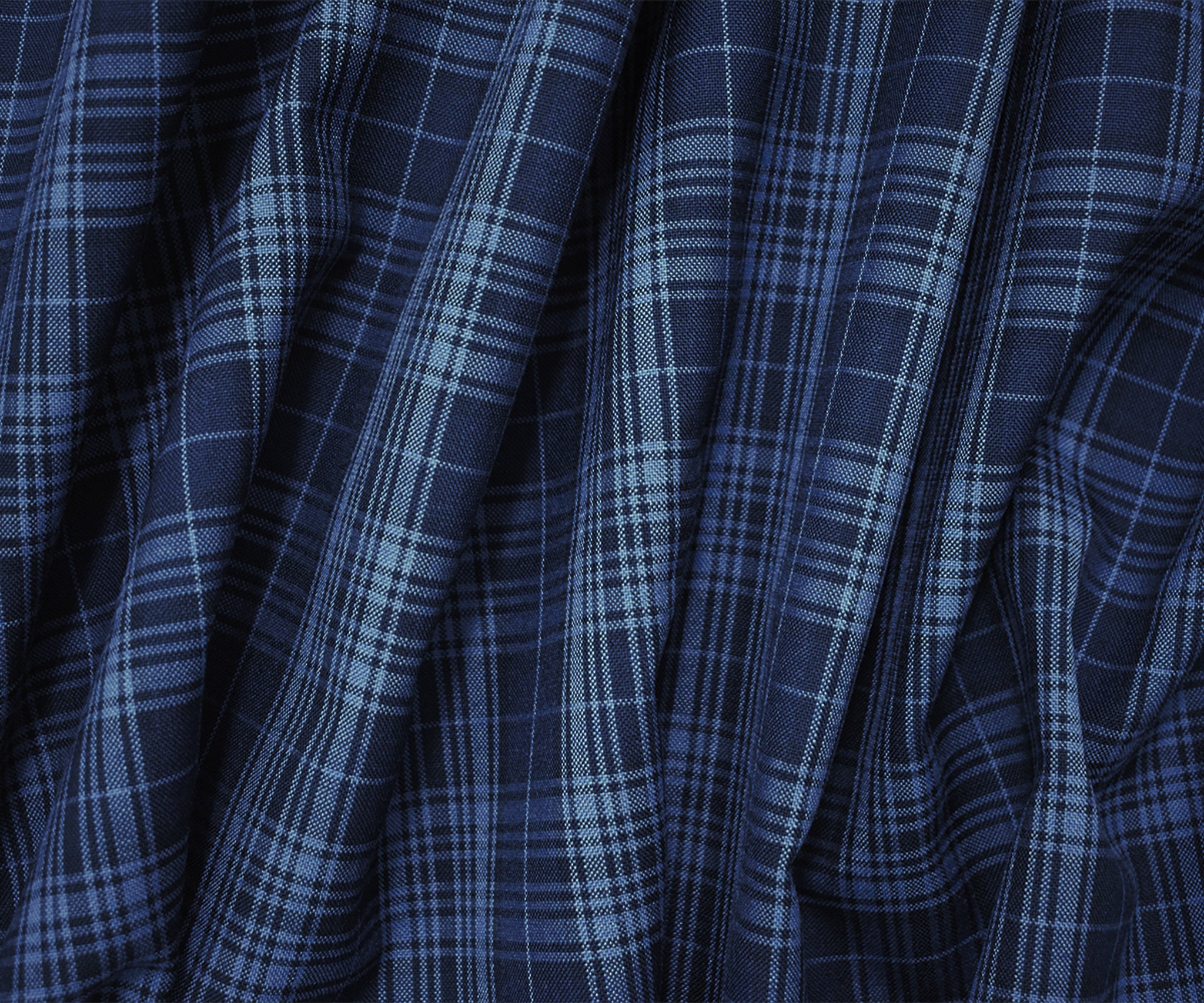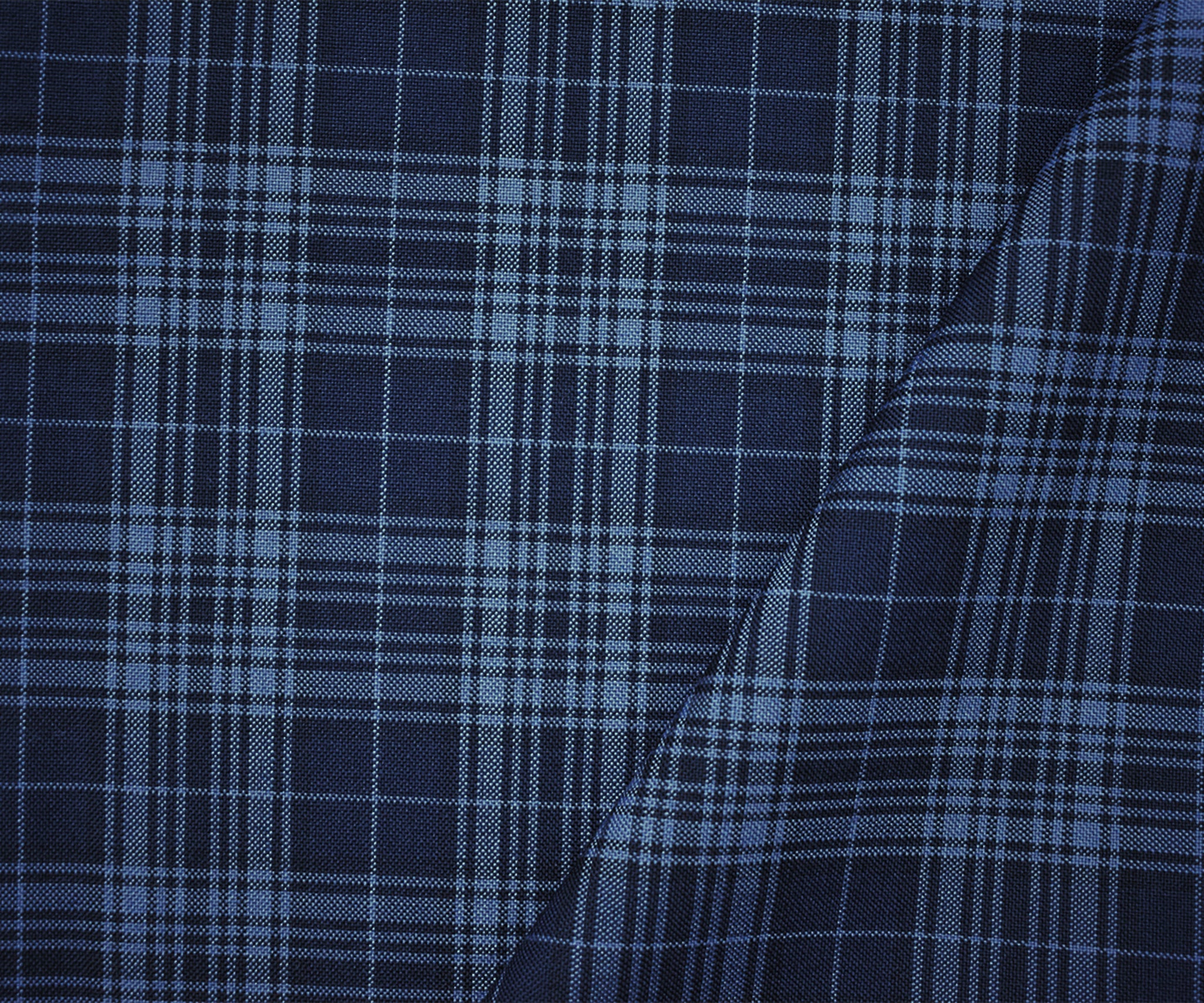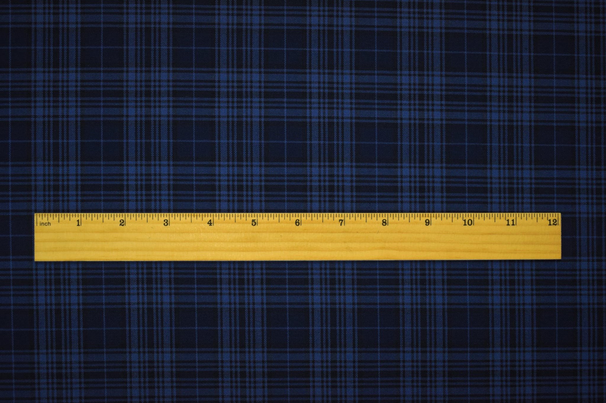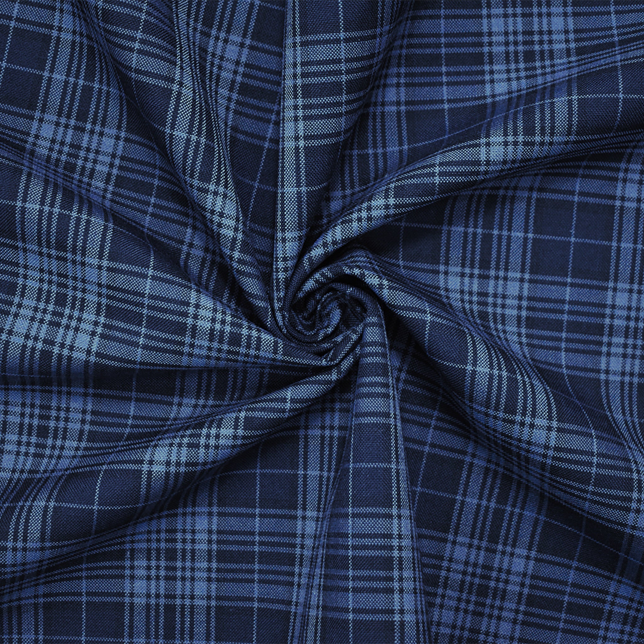 Deep Blue-Black Wool-Polyester Plaid Woven Shirting Fabric