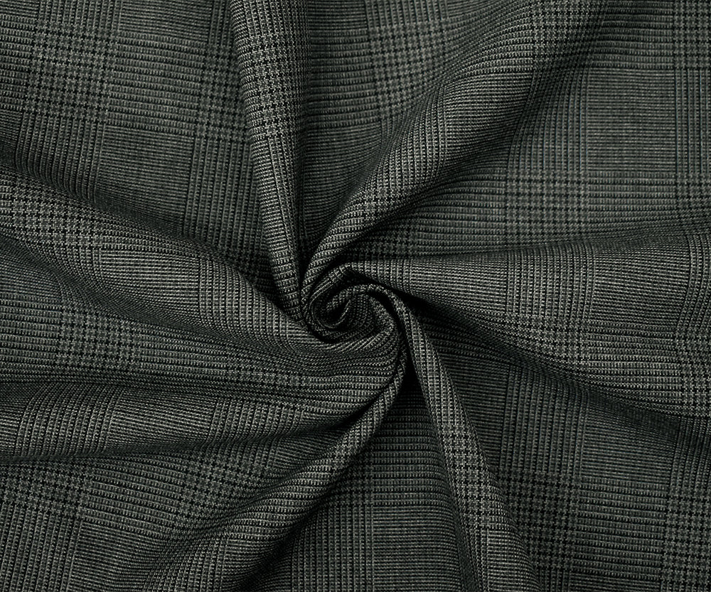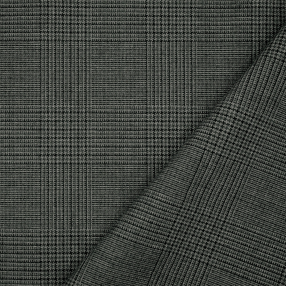 Gray-Black Wool Polyester Glen Plaid Woven Suiting Fabric