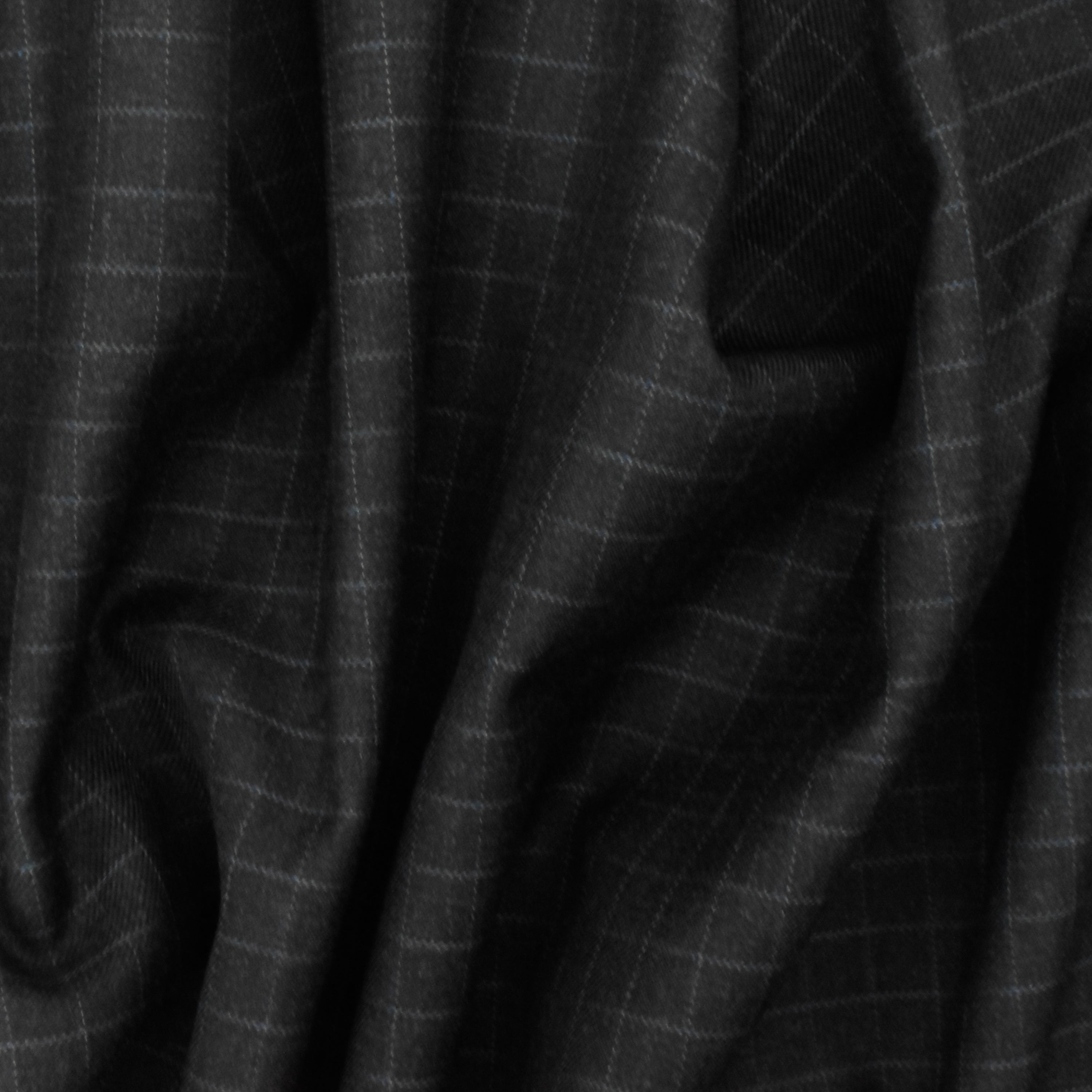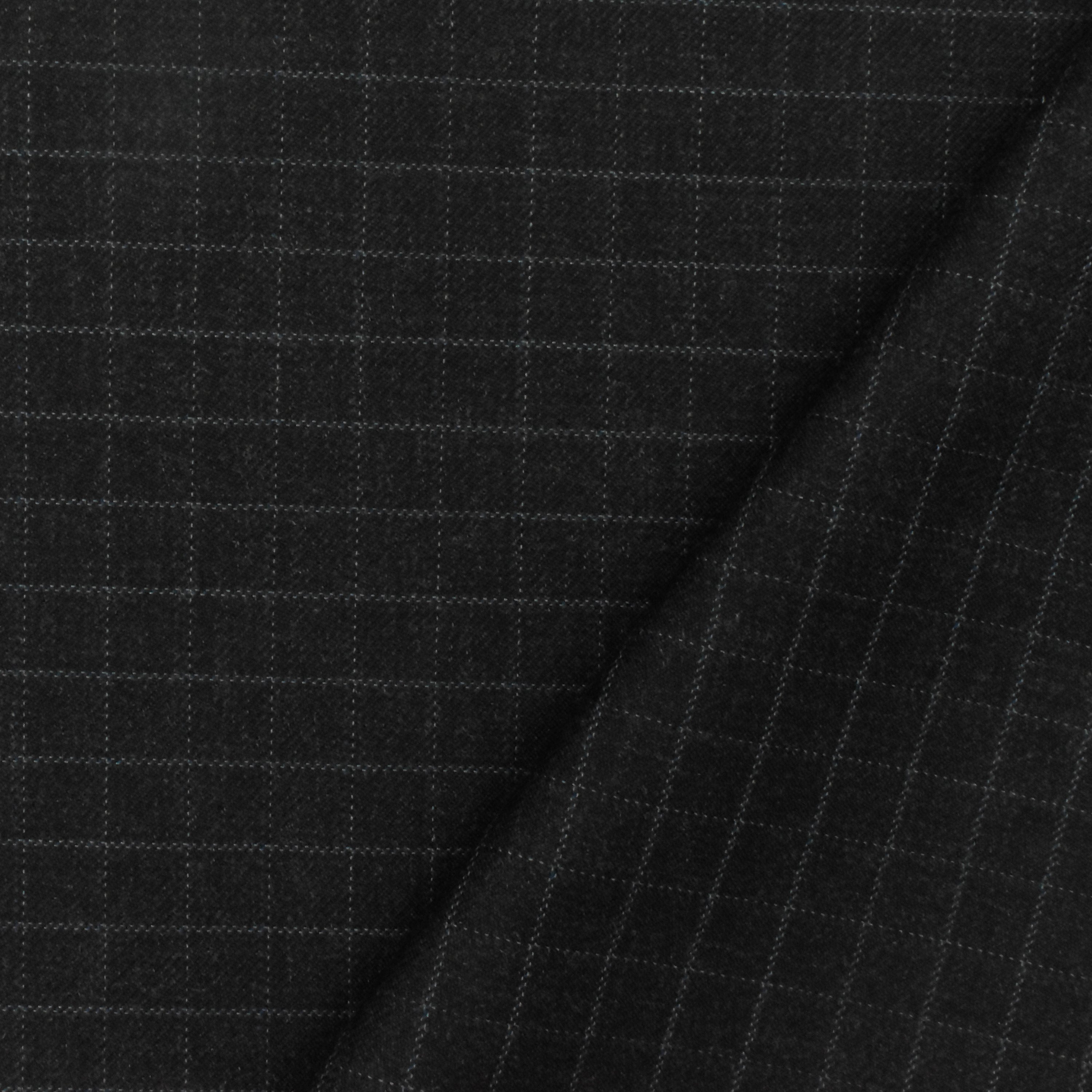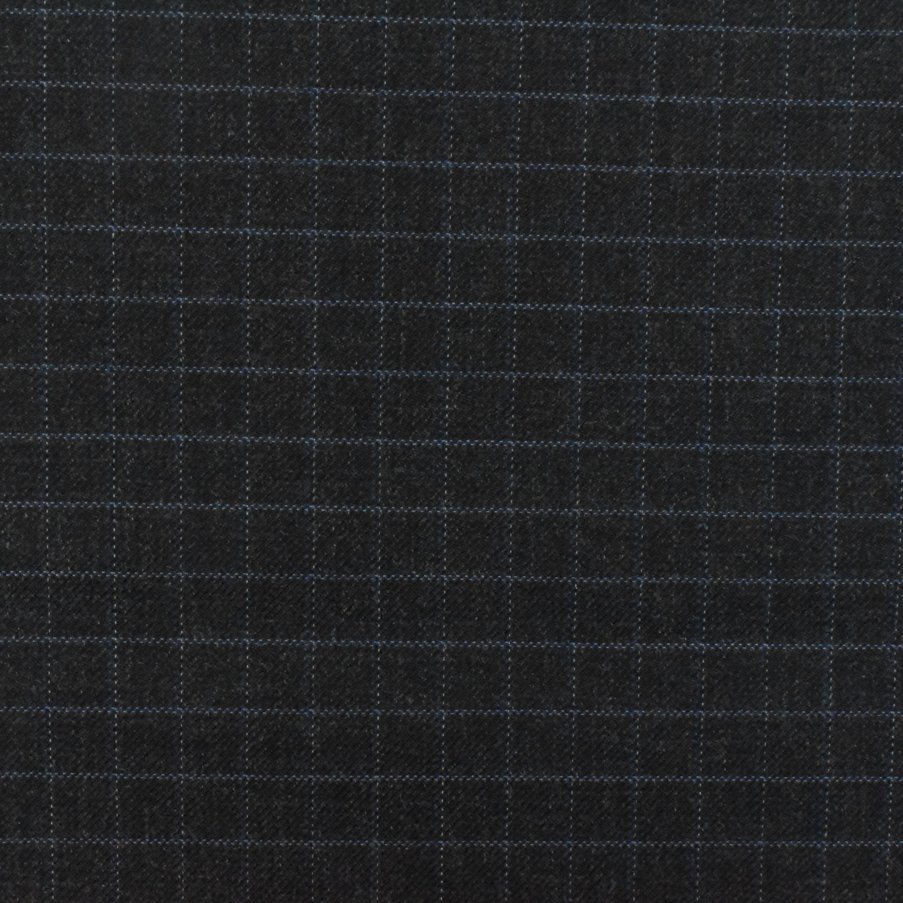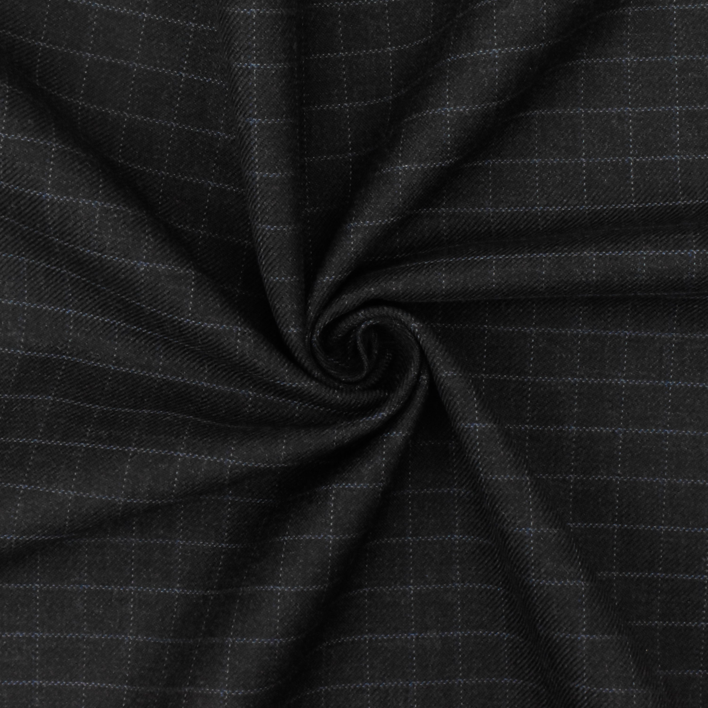 Off Black-Gray-Blue Check Wool-Poly Twill Woven Suiting Fabric