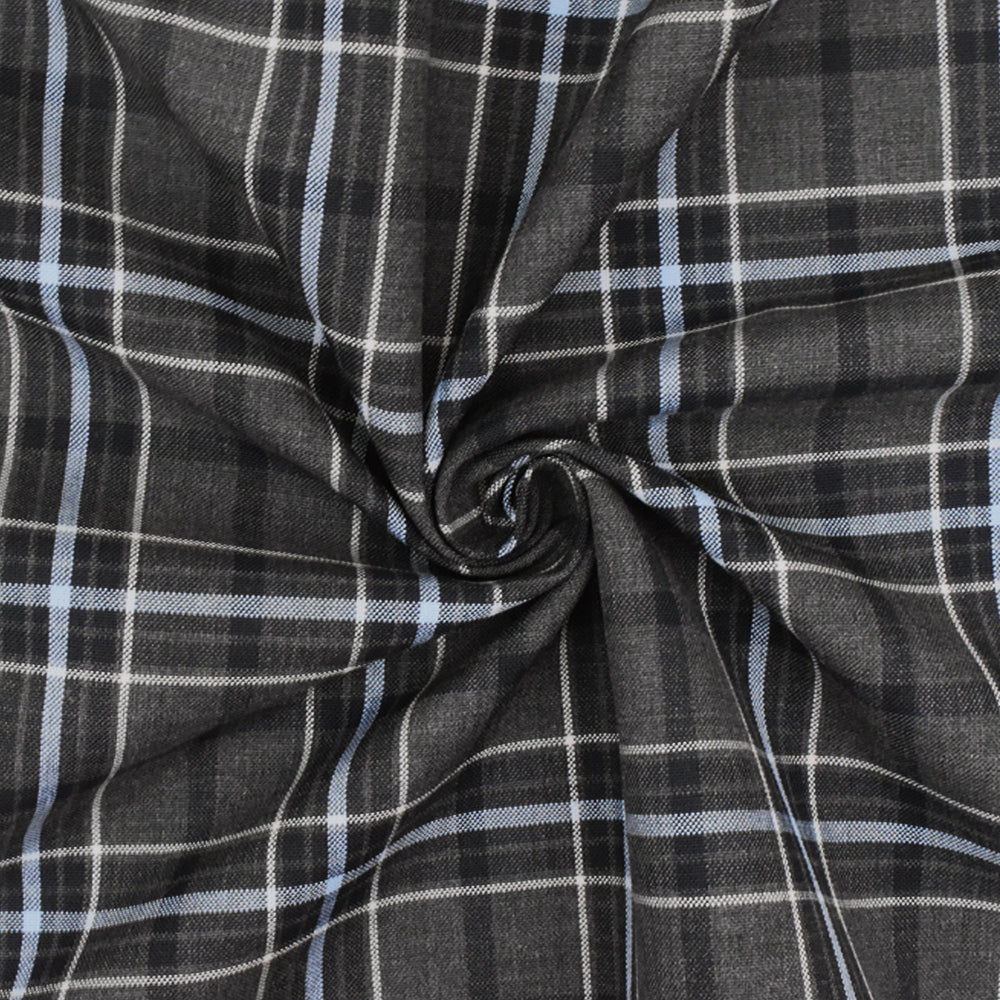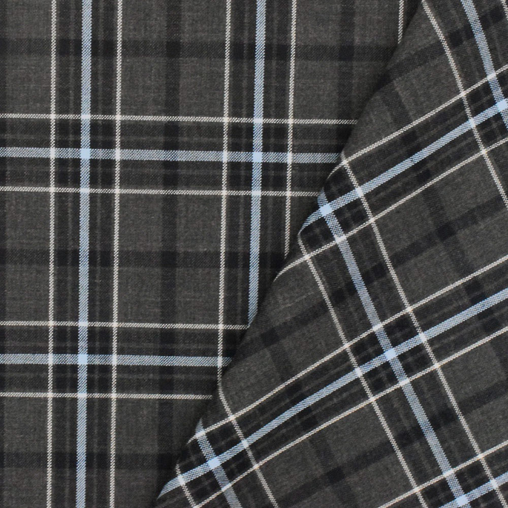 Slate Gray-Blue-Multi Plaid Poly-Wool Woven Suiting Fabric