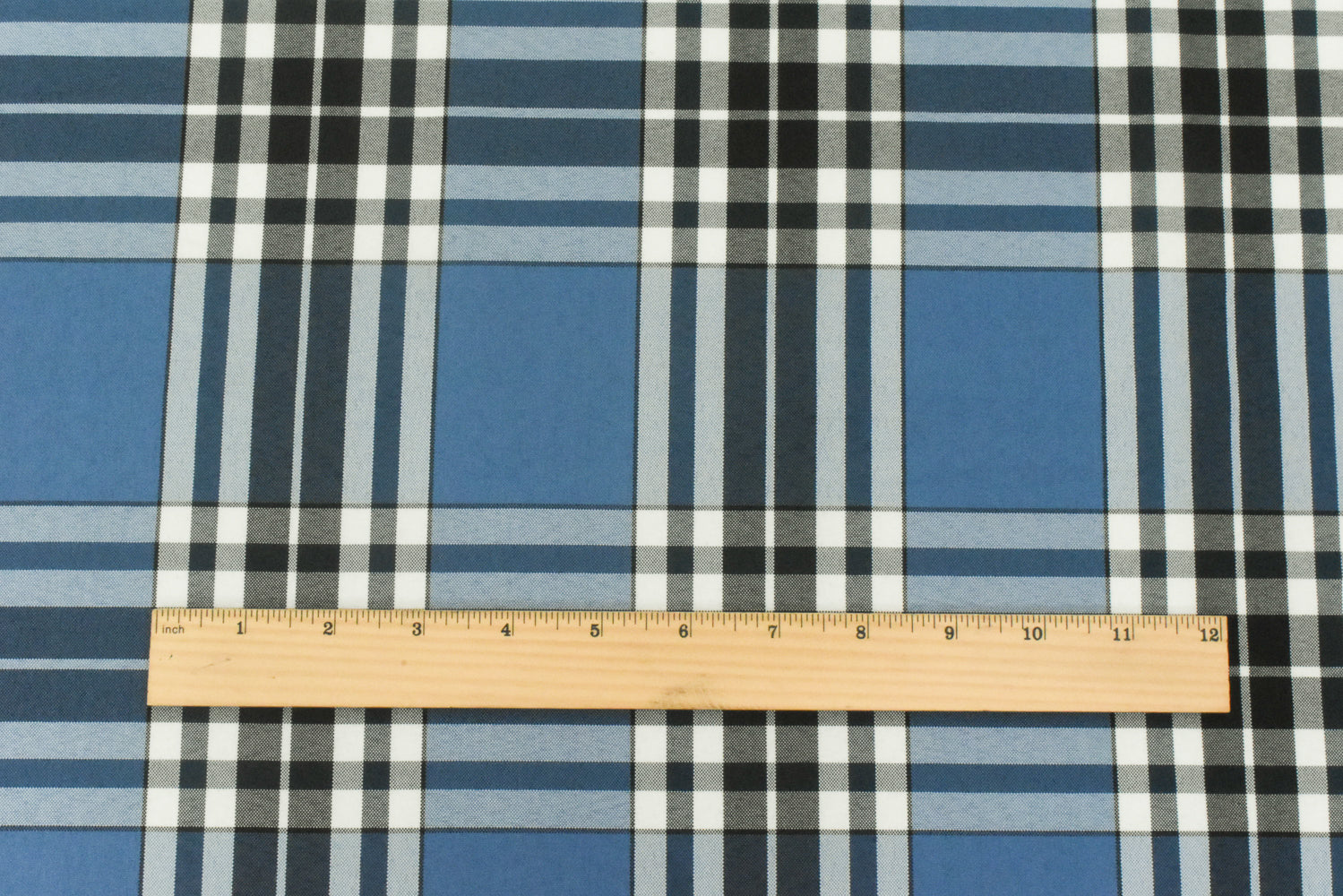 Student Blue-Black-White Plaid Poly Madras Woven Fabric