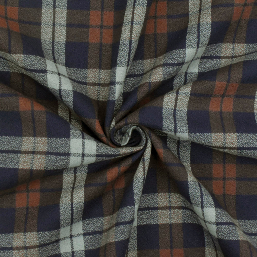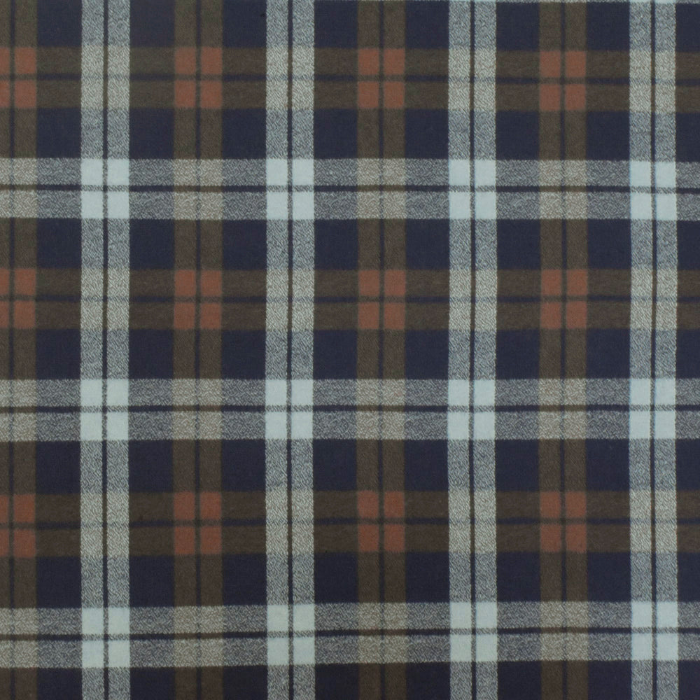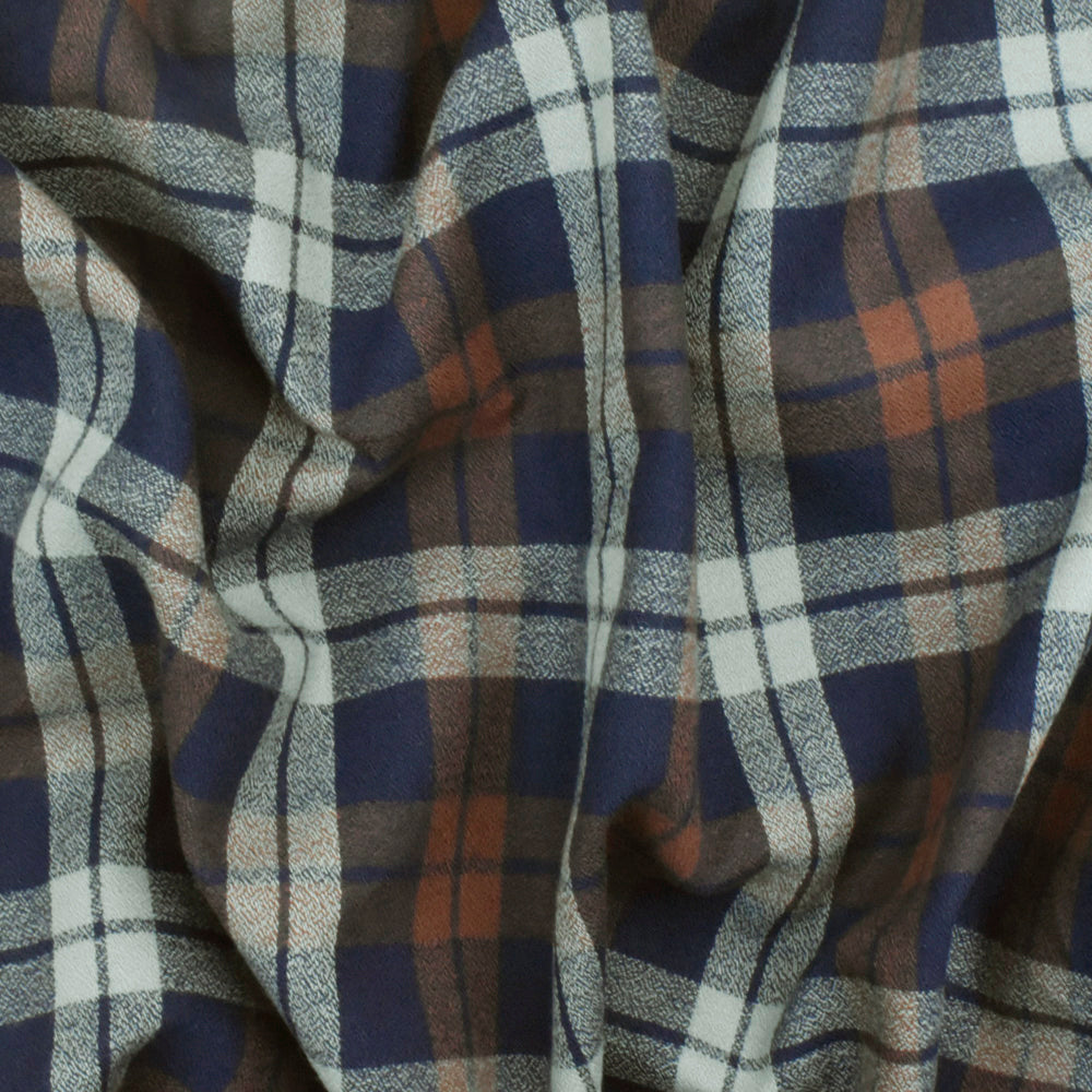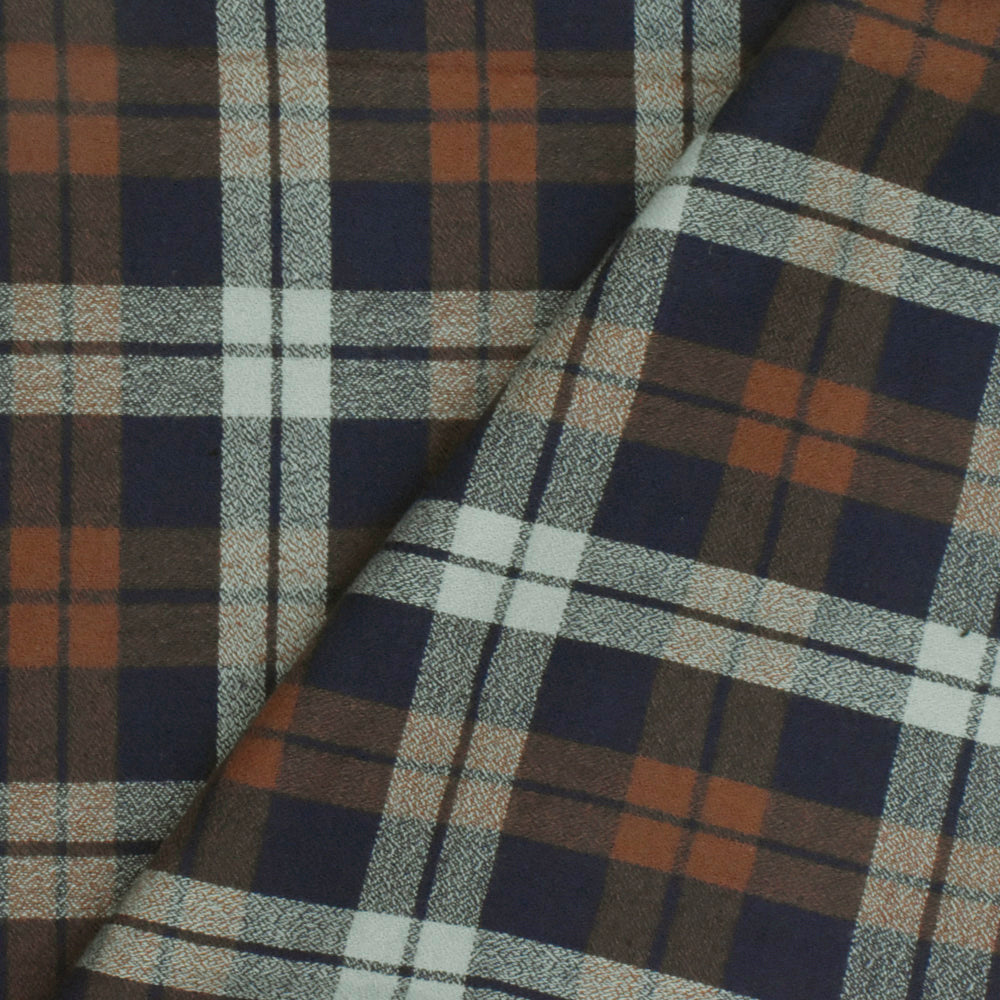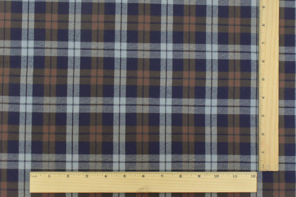 Vintage Navy-Brown-Gray Plaid Cotton Momie Woven Fabric