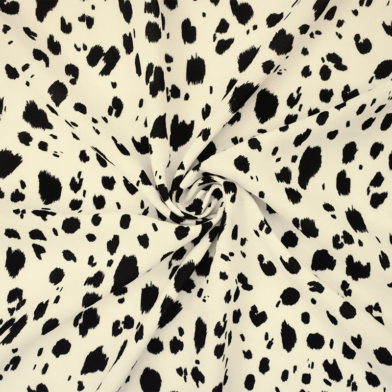 Black-White Famous Designer Spots Print Dobby Crepe Woven Fabric