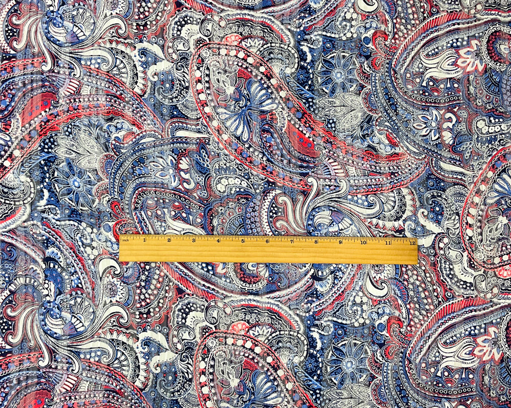 Blue-Multi Poly Paisley Printed Satin Stripe Chiffon Woven Fabric