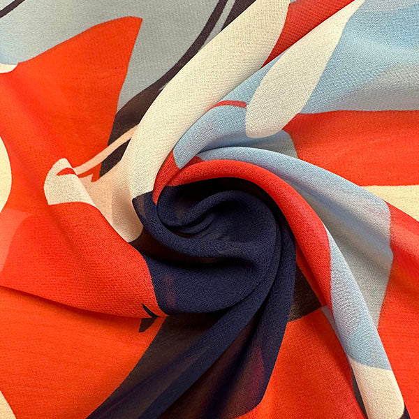 Navy Blue Multi Leaf Print Poly Chiffon Fabric