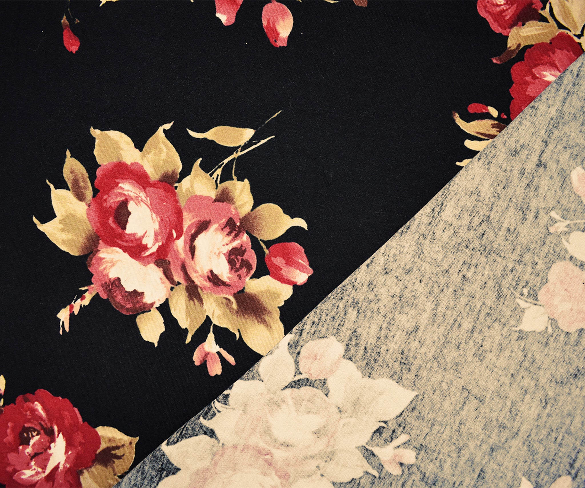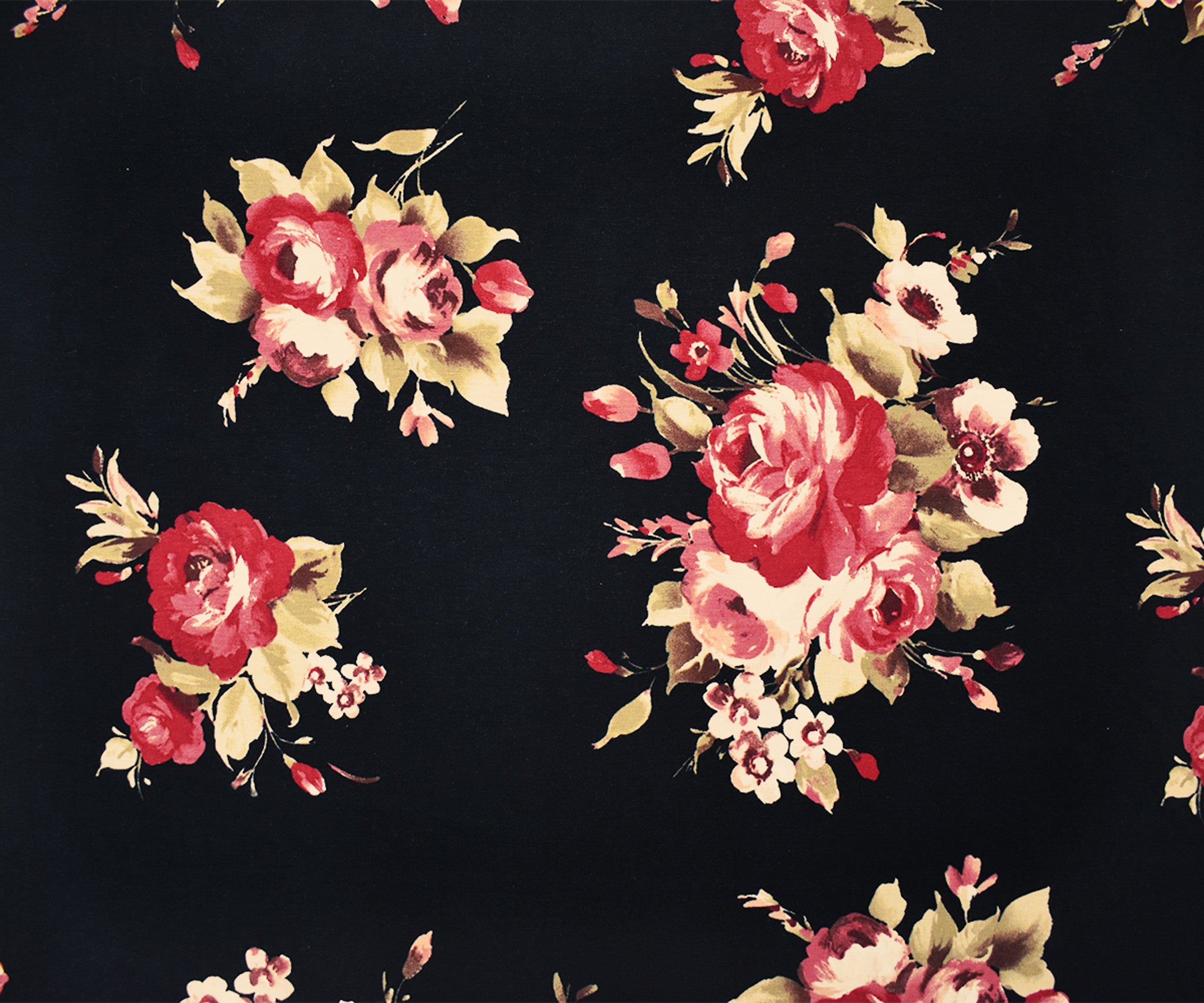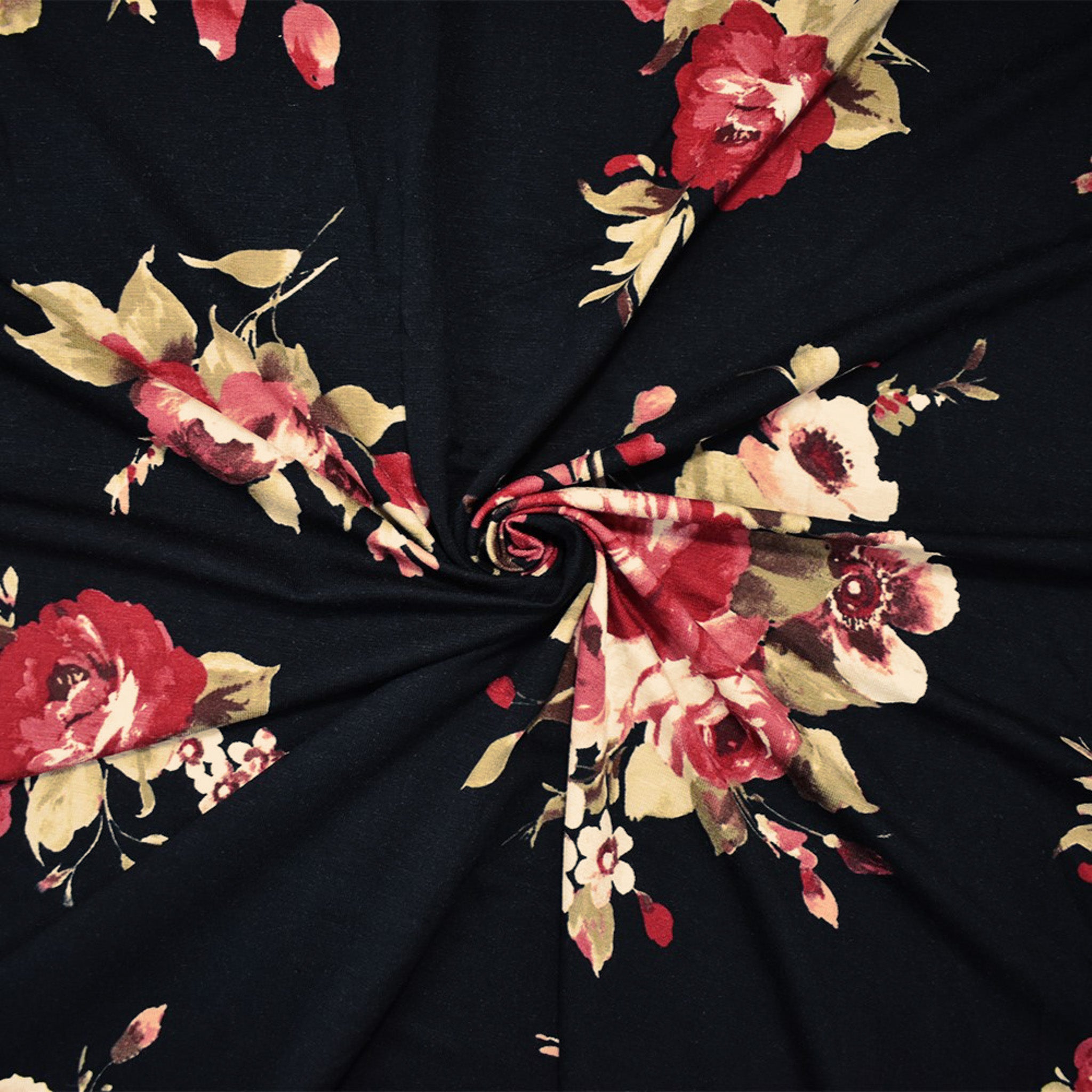 Black-Multi Rayon Stretch Spandex Floral Print Jersey Knit Fabric