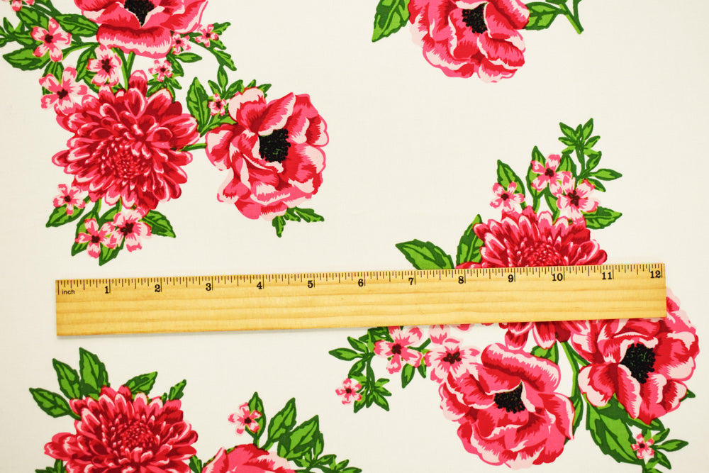 White-Pink-Multi Cotton Floral Print Stretch Spandex Poplin Woven Fabric