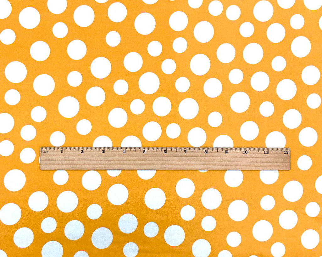 -Yellow-White Poly Spandex Stretch Dot Print Double Brush Jersey Knit Fabric
