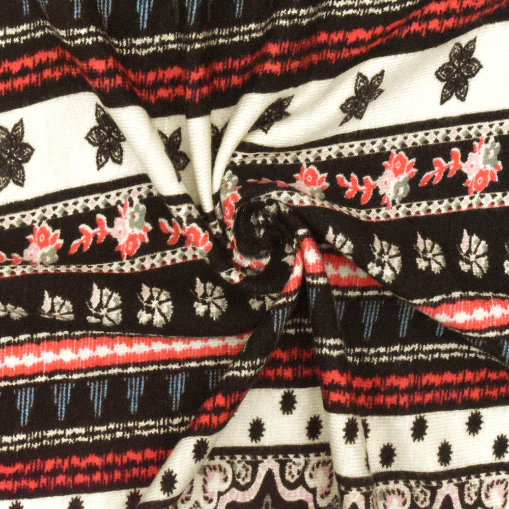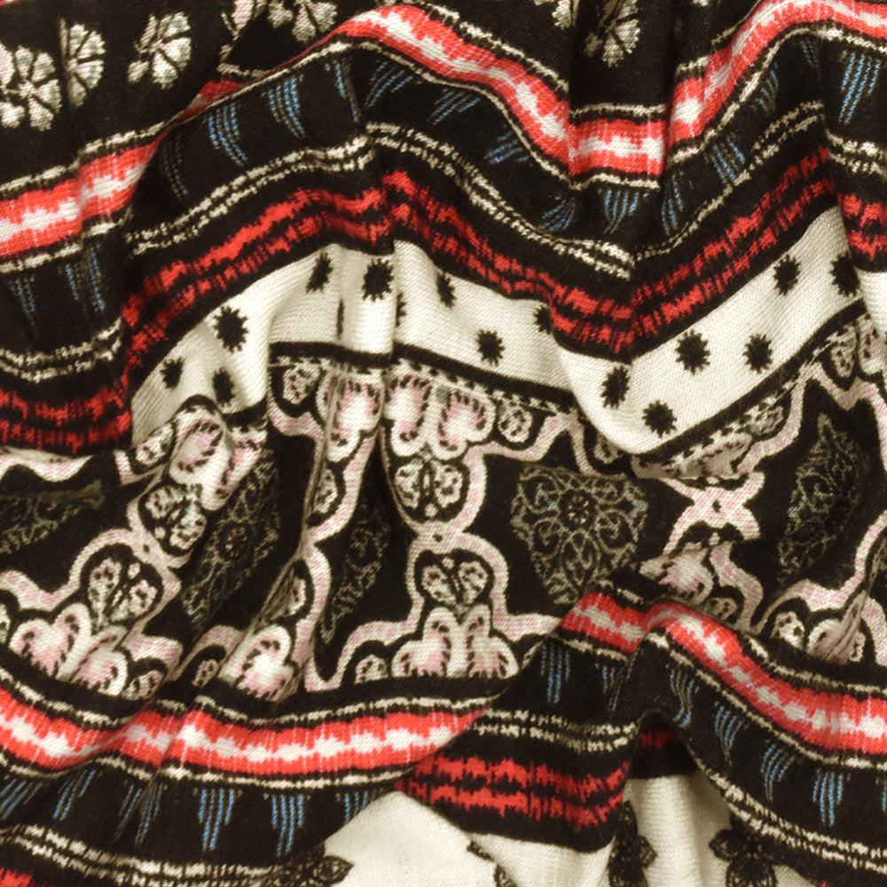 Black-Ivory-Multi Moroccan Stripe Printed Stretch Rayon Jersey Knit Fabric
