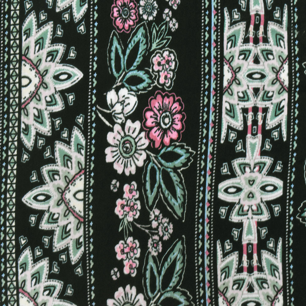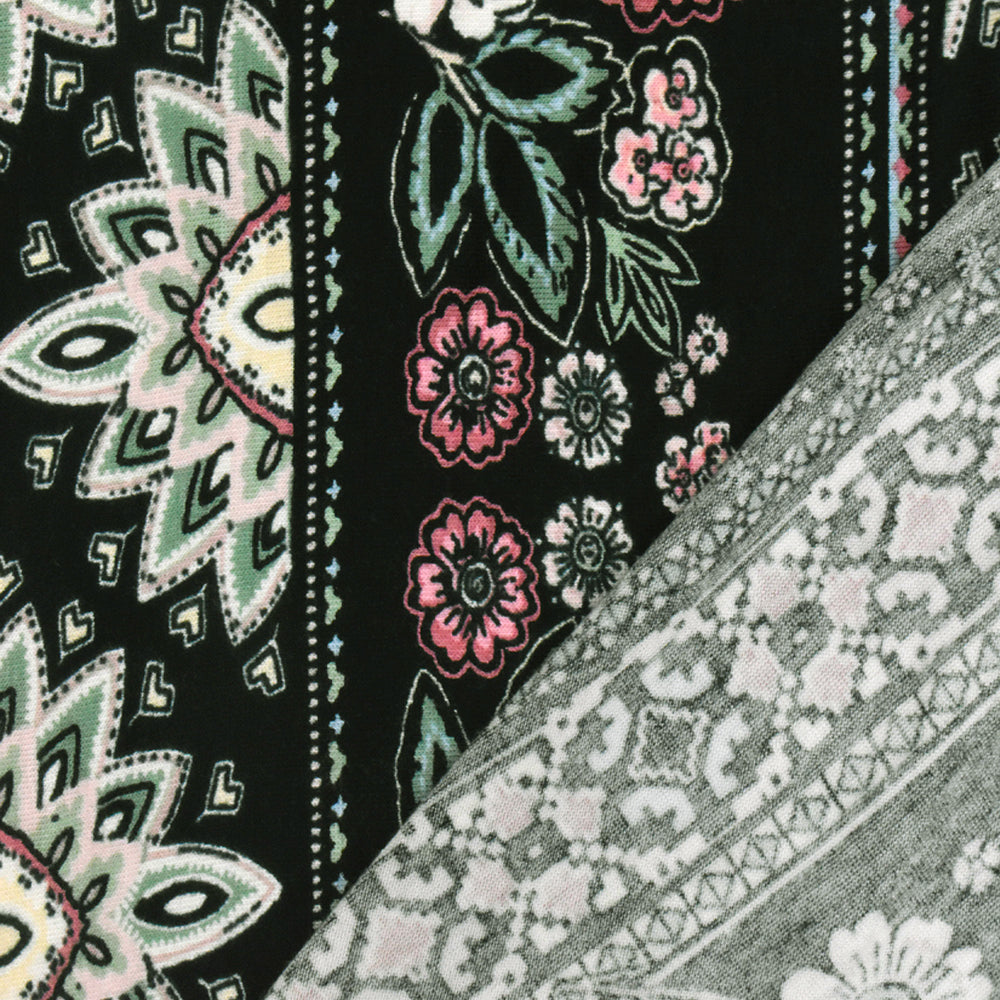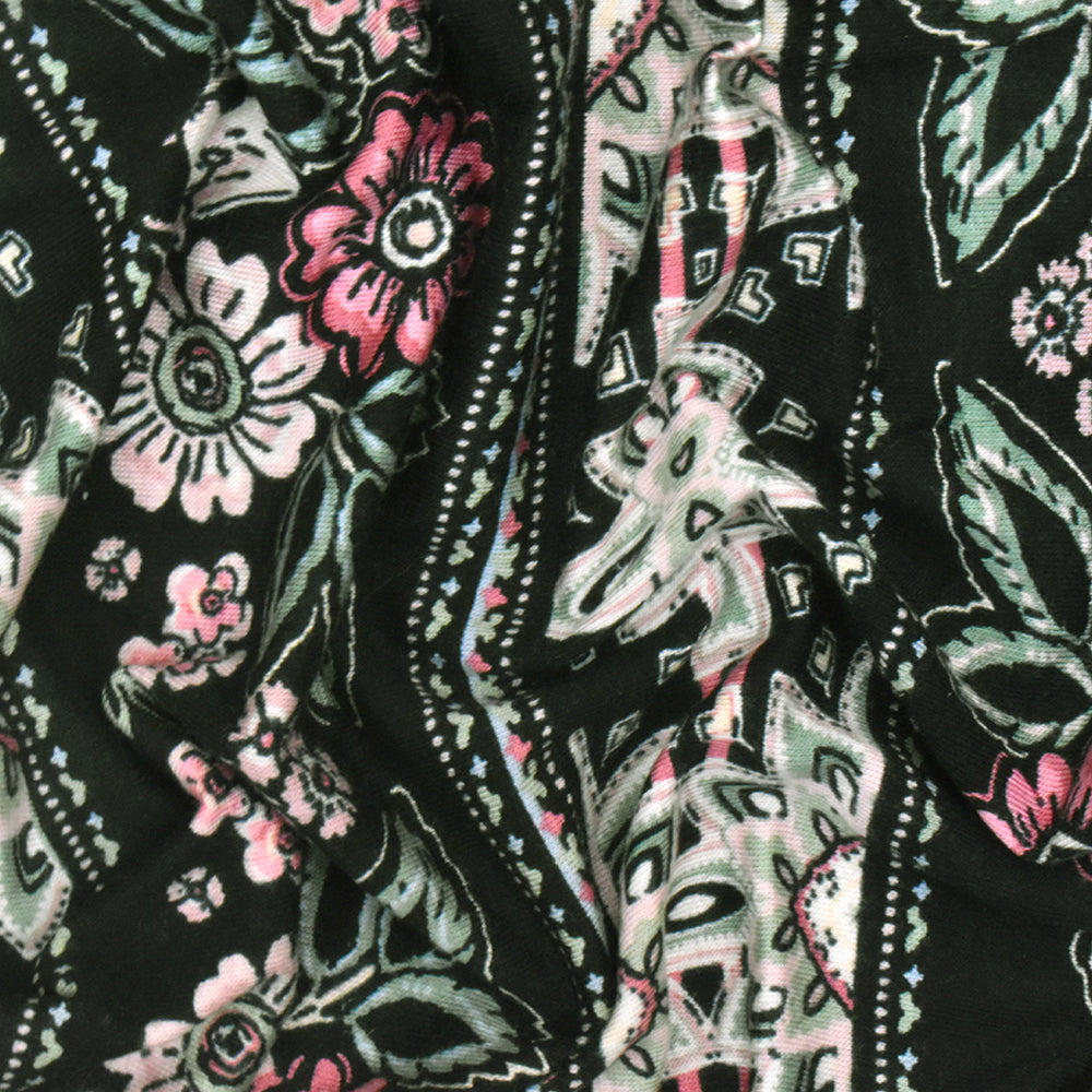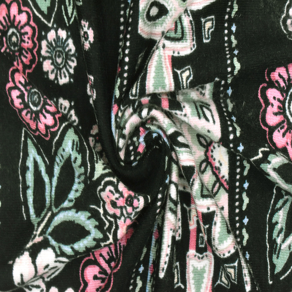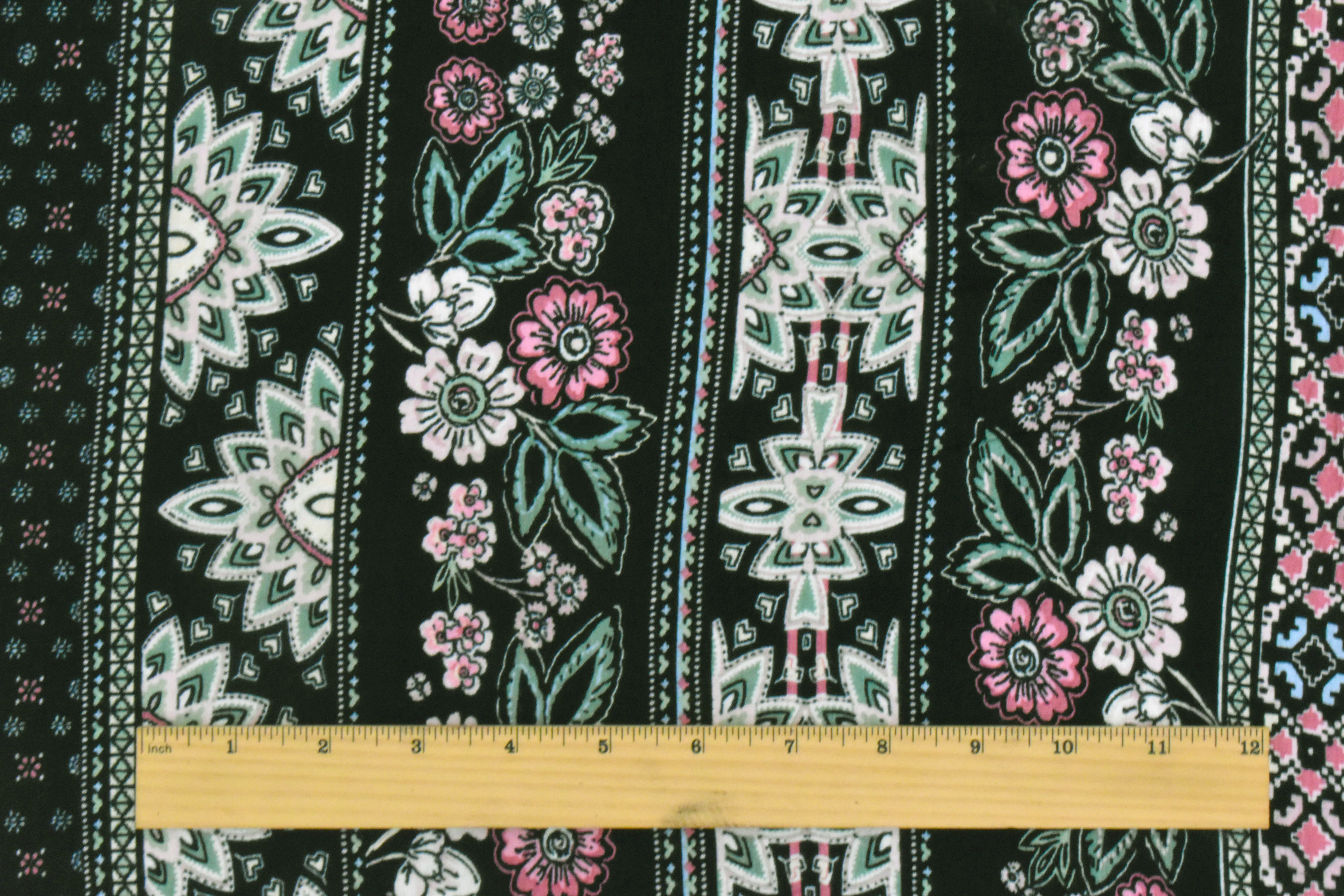Black-Pink-Multi Floral Stripe Printed Rayon Stretch Jersey Knit Fabric