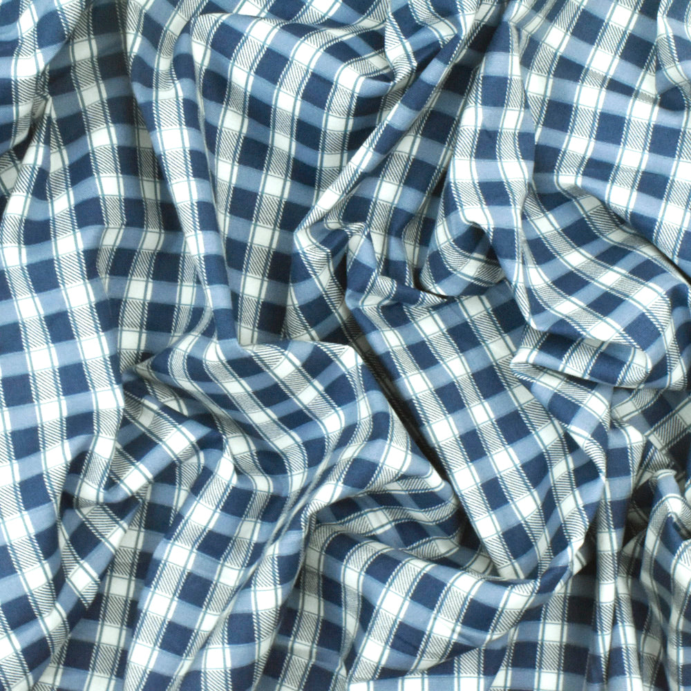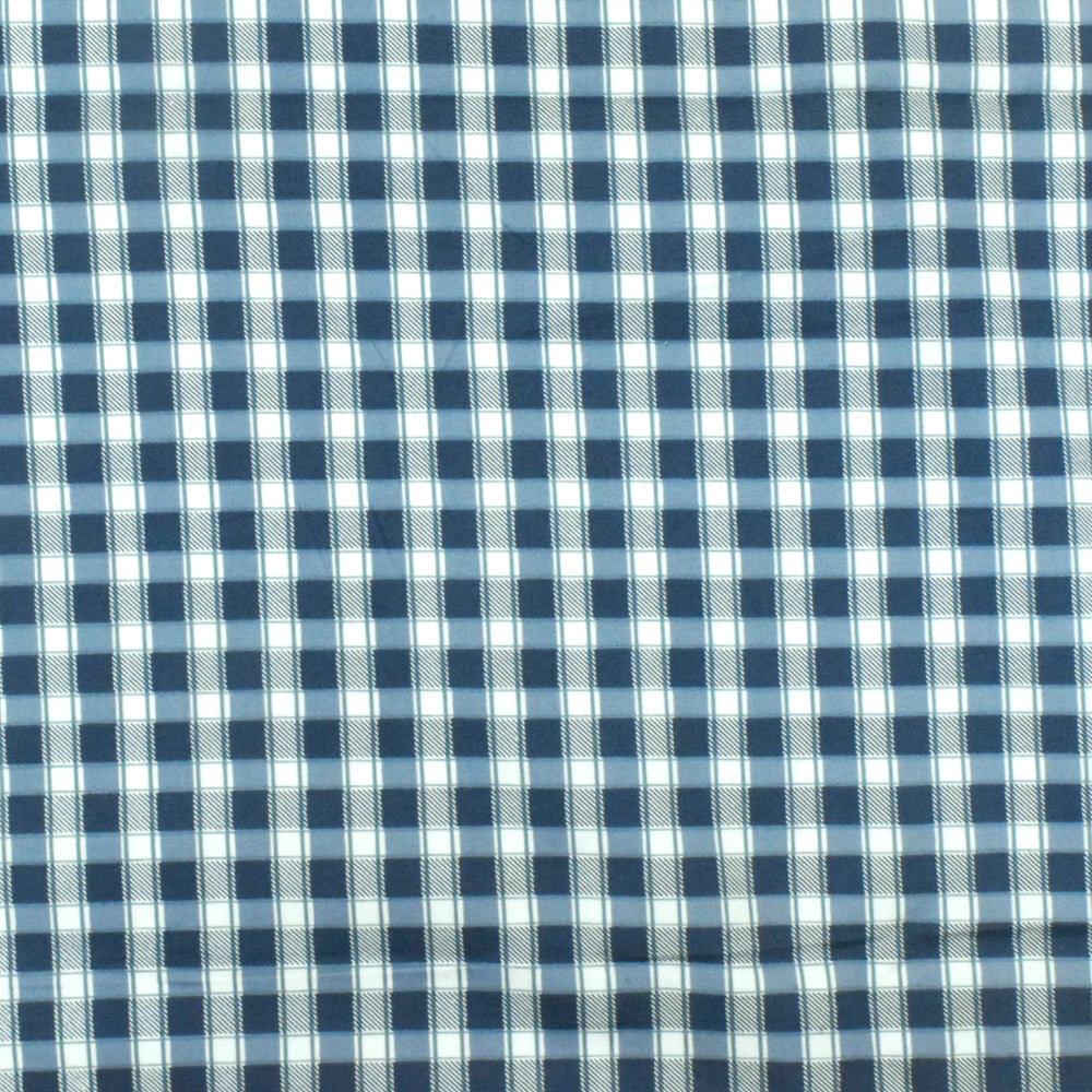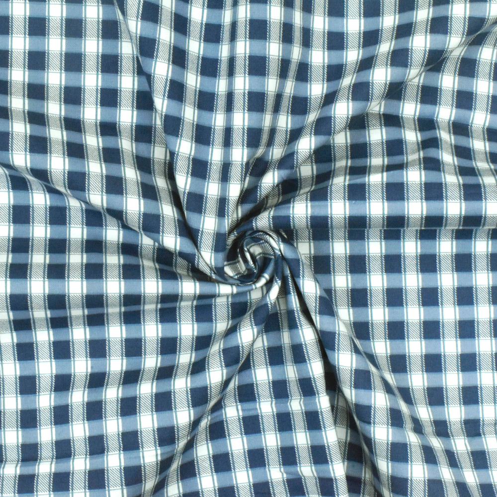 Blue-Navy-White Plaid Print Stretch Cotton Broadcloth Woven Fabric