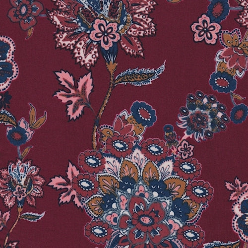 ITY Cranberry Stylized Floral Jersey Knit Fabric