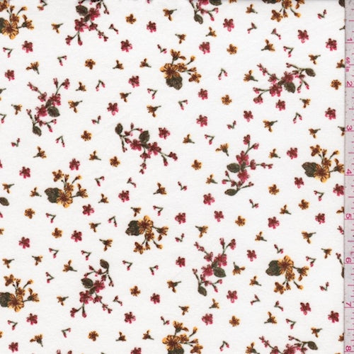 Ivory/Deep Pink Mini Floral Double Brushed Jersey Knit Fabric