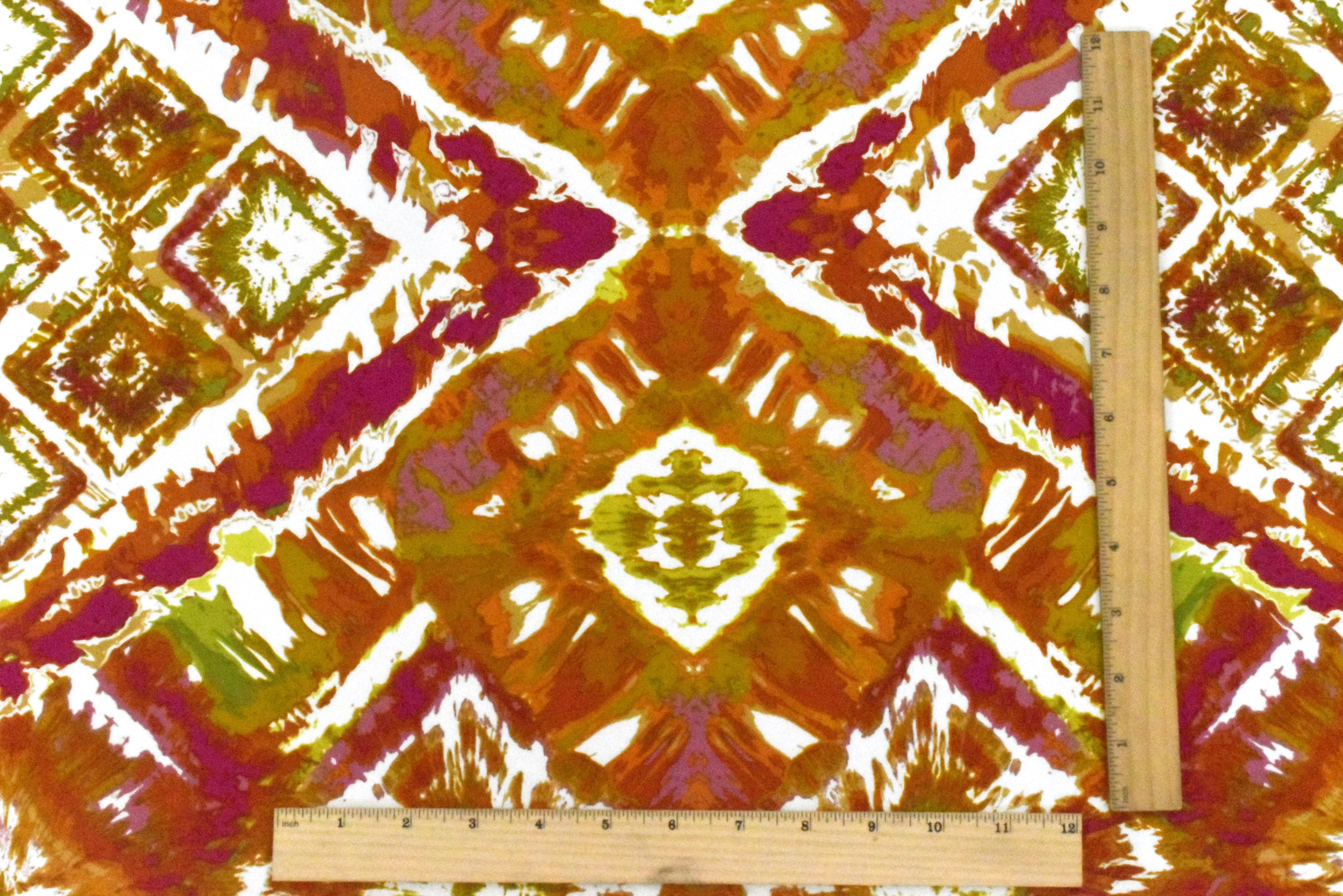 Orange-Multi Art Diamond Printed Swimwear Stretch Nylon Tricot Knit Fabric
