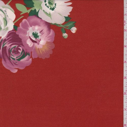 Rustic Orange Floral Double Brushed Jersey Knit Fabric