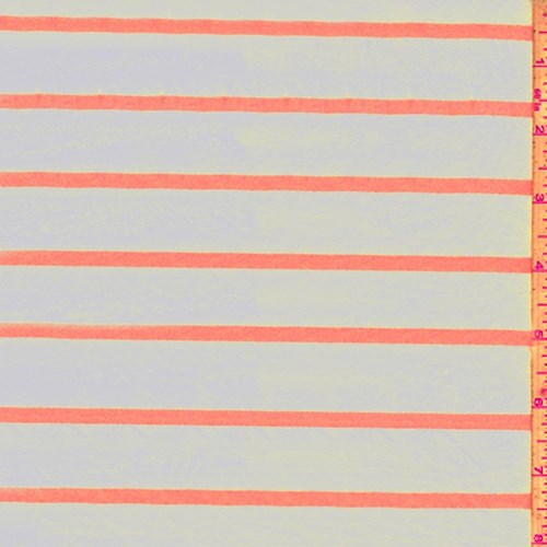 White/Neon Orange Stripe Double Brushed Jersey Knit Fabric