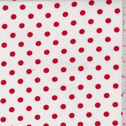 White/Ruby Dot Double Brushed Jersey Knit Fabric