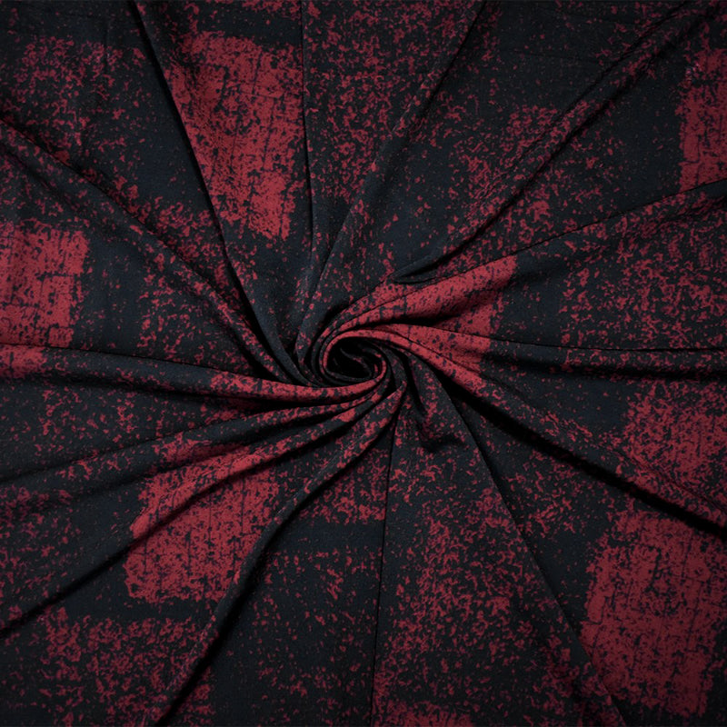 Black-Red Poly Abstract Printed Stretch ITY Jersey Knit Fabric