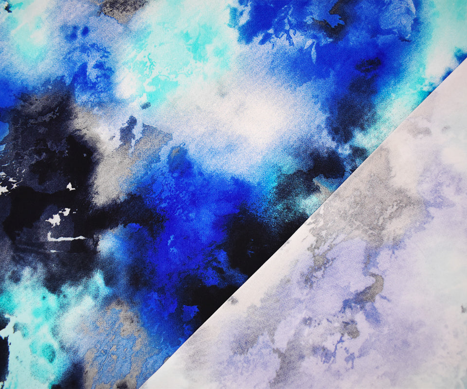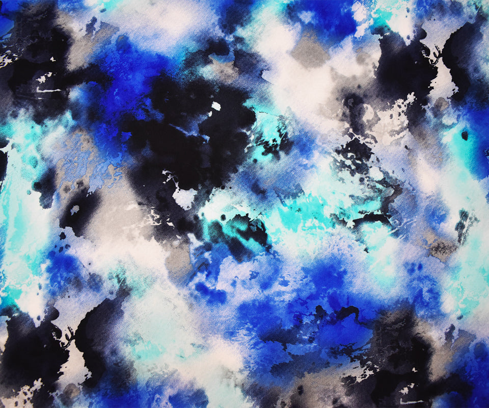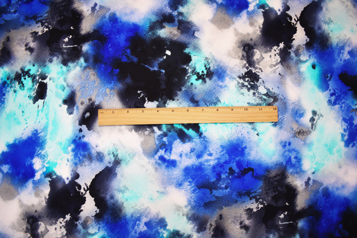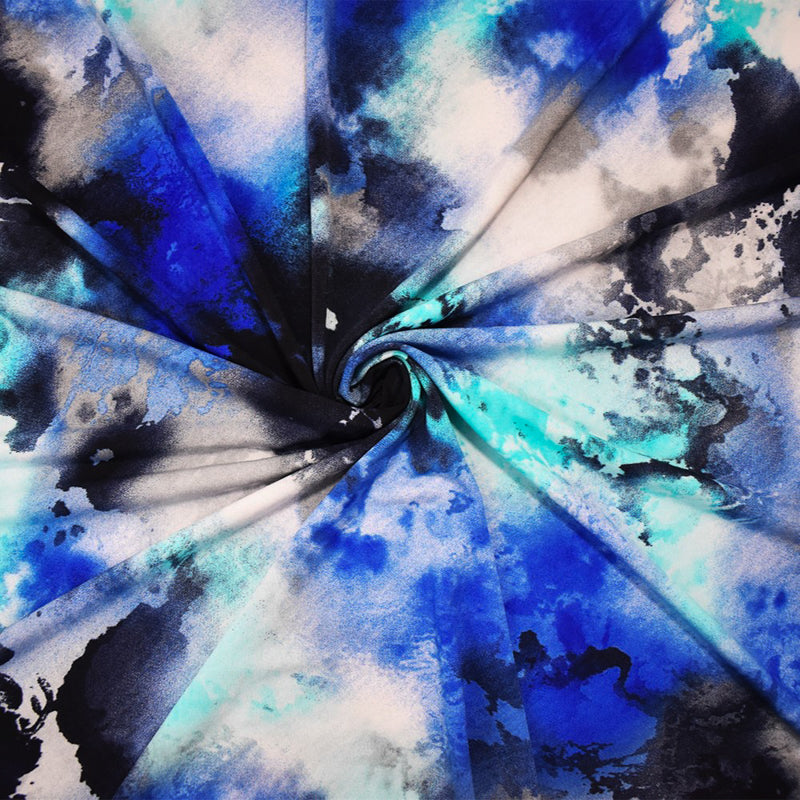 Blue-Multi Poly Abstract Printed Stretch ITY Jersey Knit Fabric