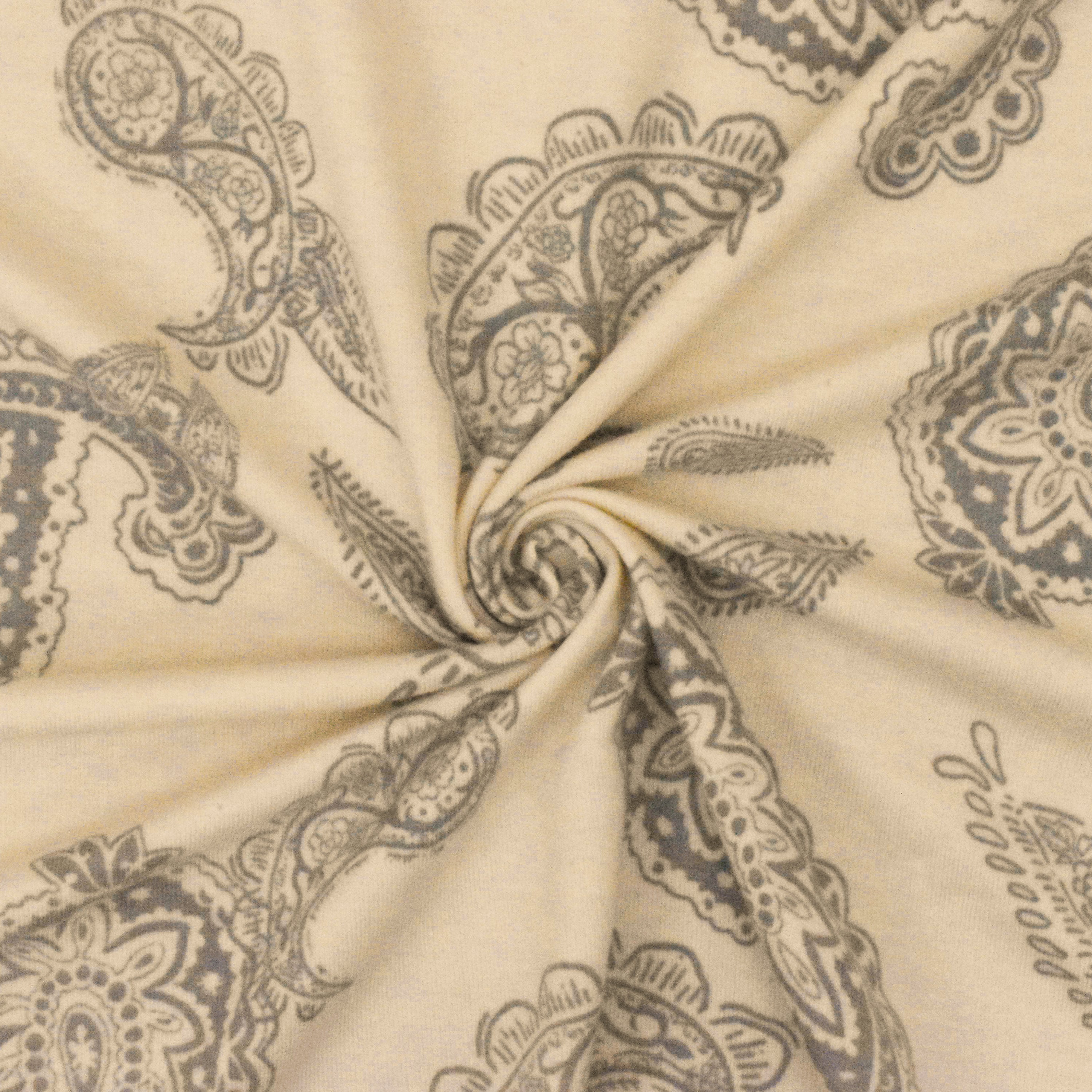 Light Beige-Gray Paisley Printed Stretch Jersey Knit Fabric