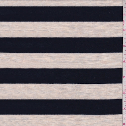 1 7/8 YD PC-Heather Oatmeal/Midnight Stripe Rayon Jersey Knit Fabric
