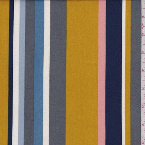 1 YD PC-Pewter/Gold/Navy Stripe Double Brushed Jersey Knit Fabric