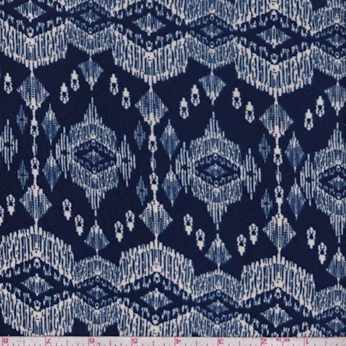 2 1/4 YD PC-Blue/Cream Inca Stripe Super Brushed Jersey Knit Fabric