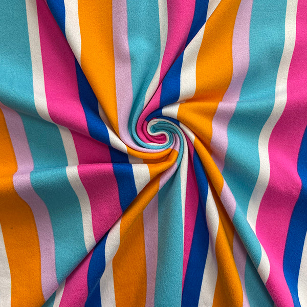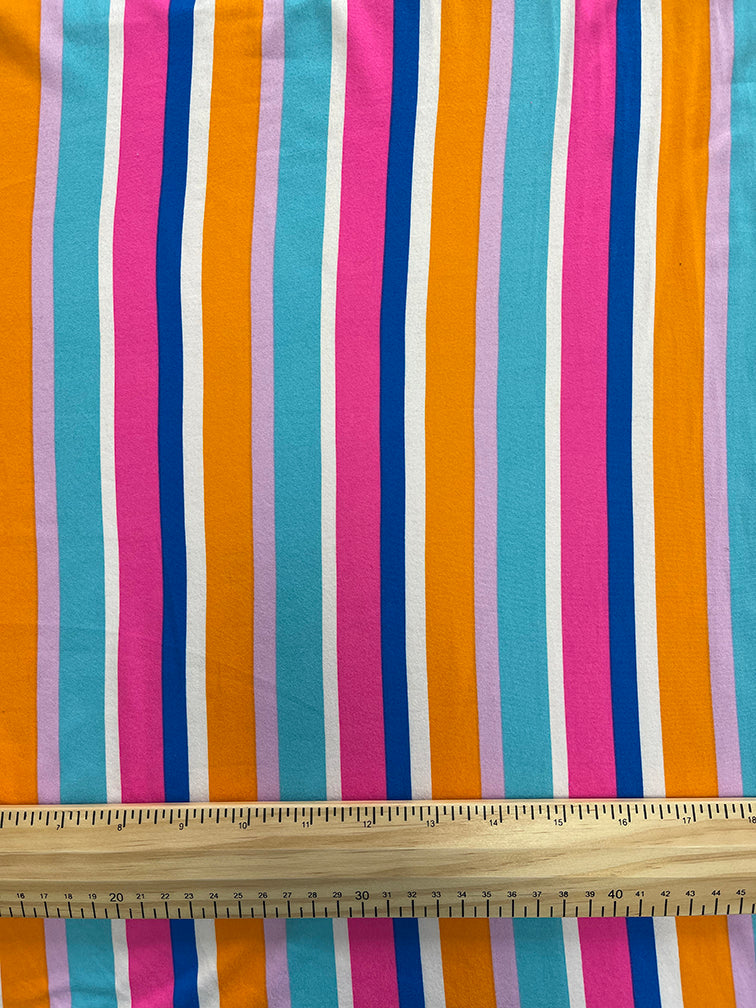 2 YD PC-Orange Multi Print Stripe Double Brushed Knit Fabric