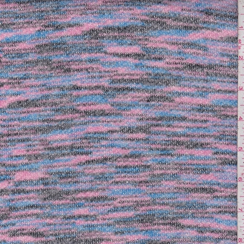 3 1/8 YD PC-Pink/Black/Blue Stripe French Terry Knit Fabric